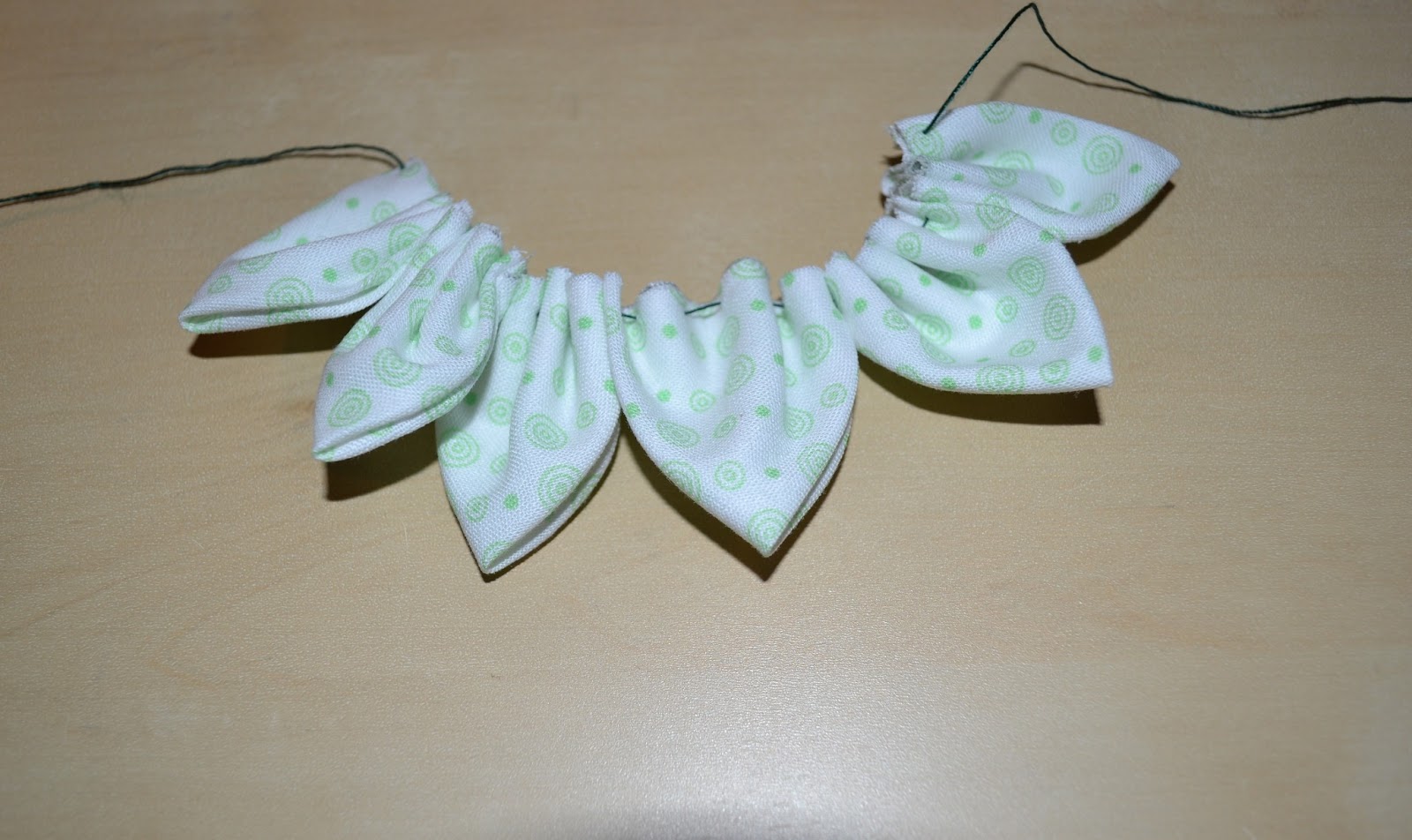 Nun den festen Zwirn auswählen und eine Nadel und los geht das 🙂 2x Falten und dann bisschen mit der Nadel rumhantieren und fertig ist die Blume!