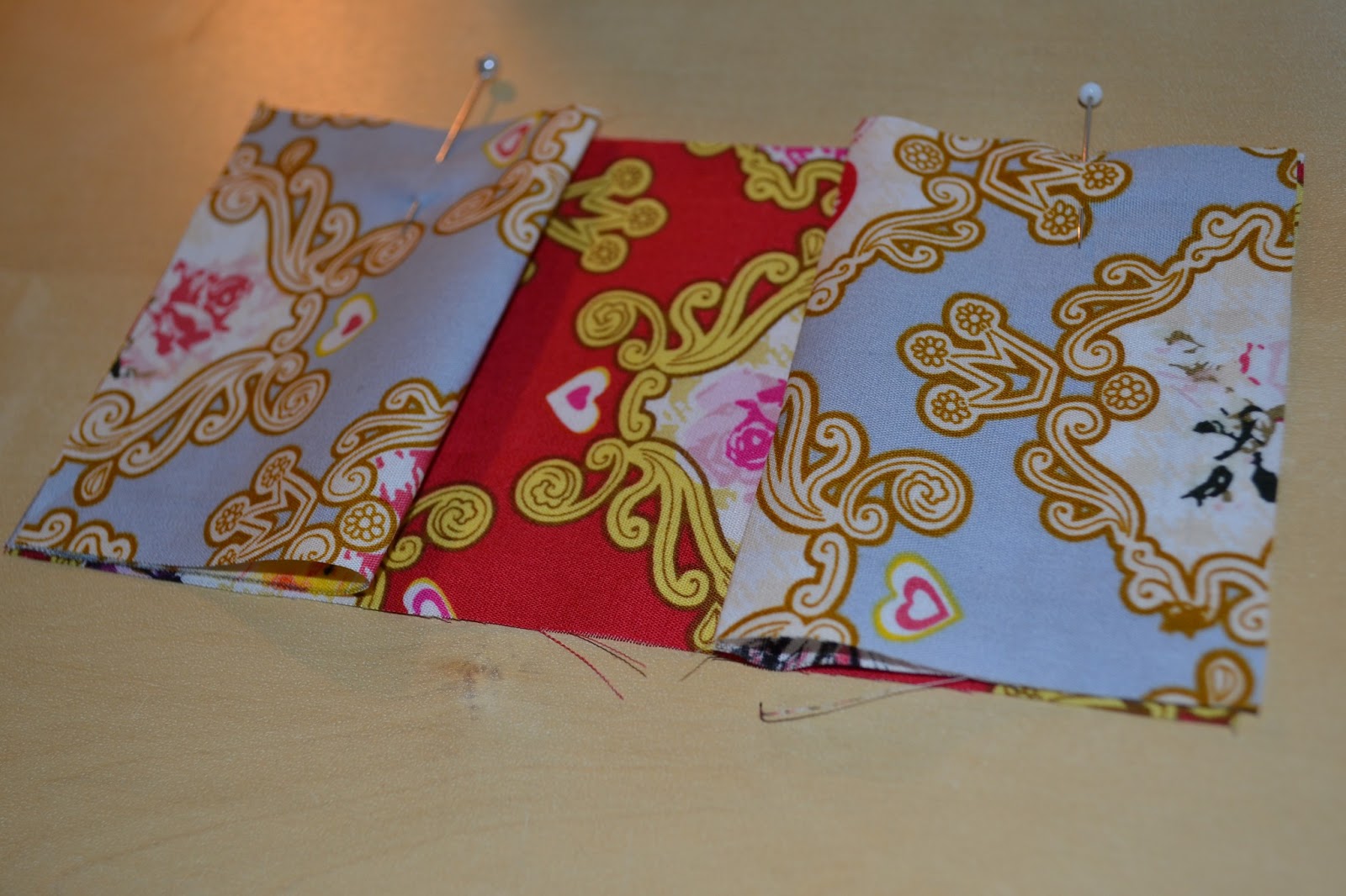 Dann den zweiten Außenstoff rechts auf legen und abstecken.