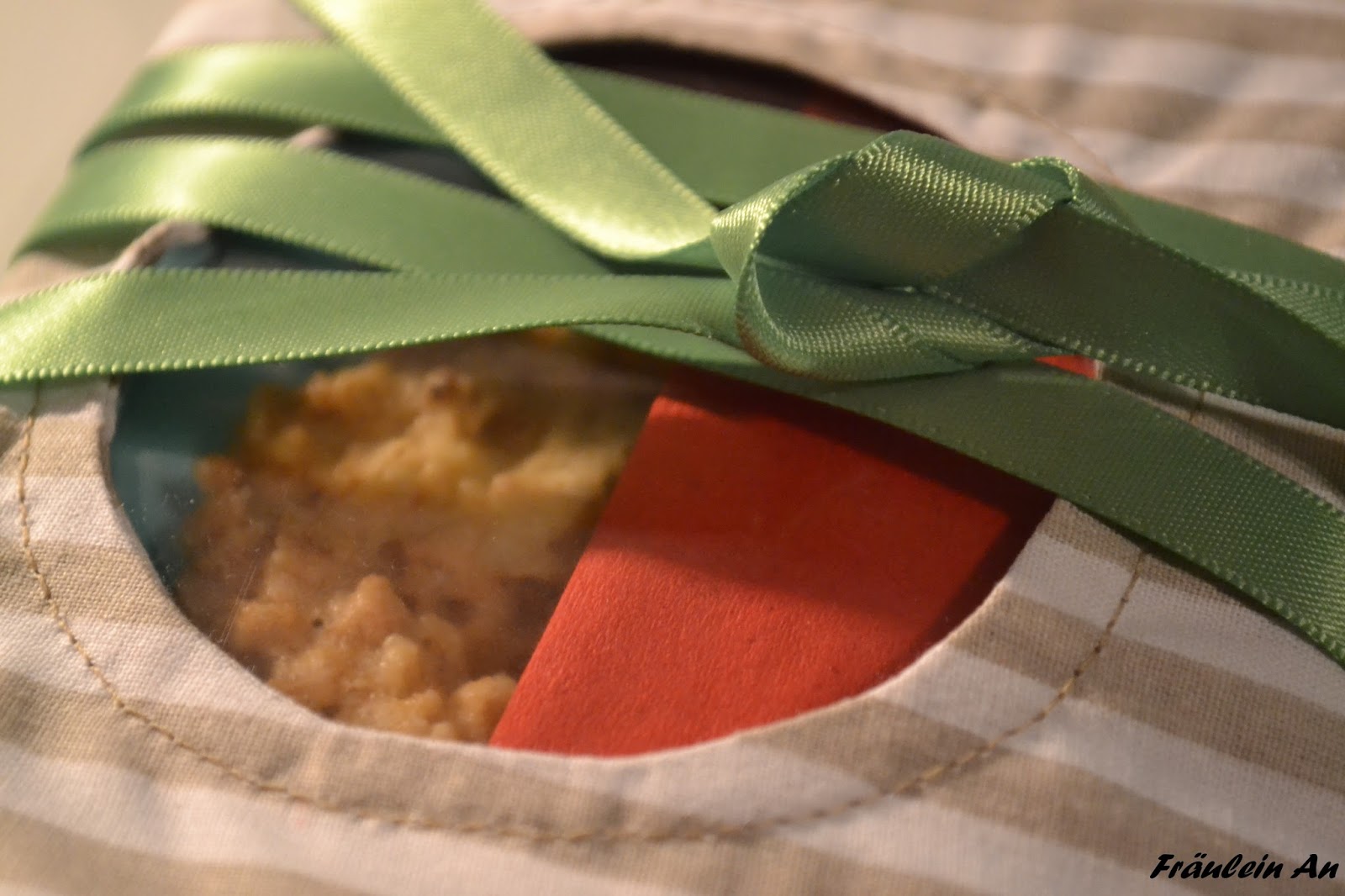 Eigentlich wird die Verpackung mit Decovil verstärkt, aber das hat Frau nicht im Haus und dann hatte ich auch nicht wirklich Lust Vliesline aufzubügeln 😉 und somit habe ich einfach auf Verstärkung verzichtet.