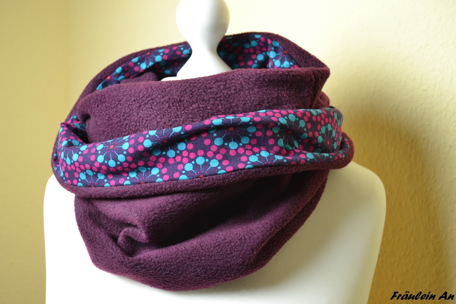 Und hier ist nun mein Kuschel Loop aus Jersey und Bordeauxrotem Fleece.