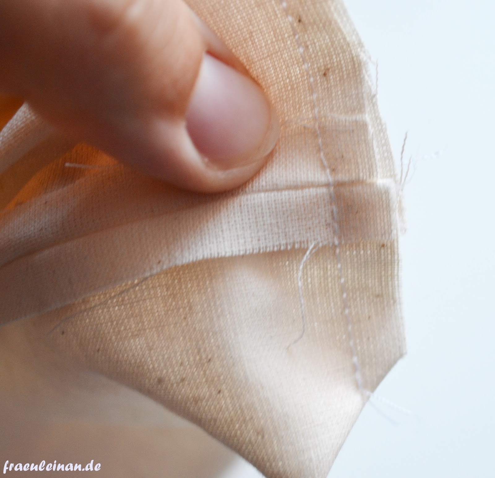 Den Innenstoff auf die rechte Seite drehen und die Paspel zu Hand nehmen.