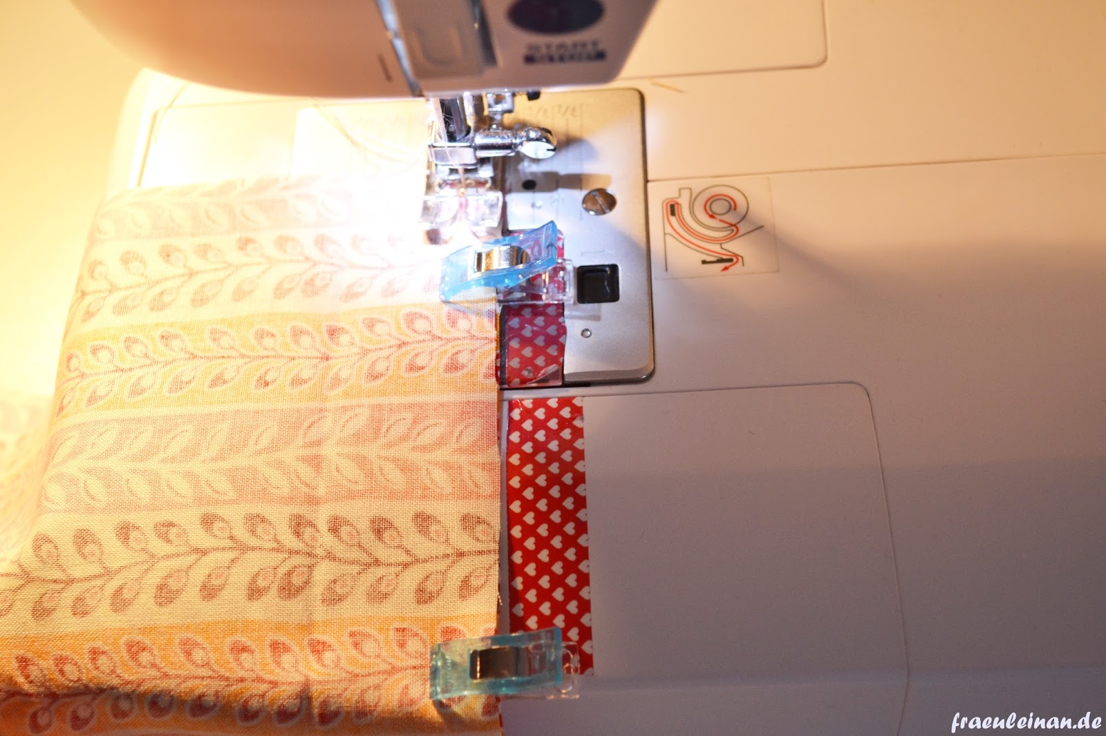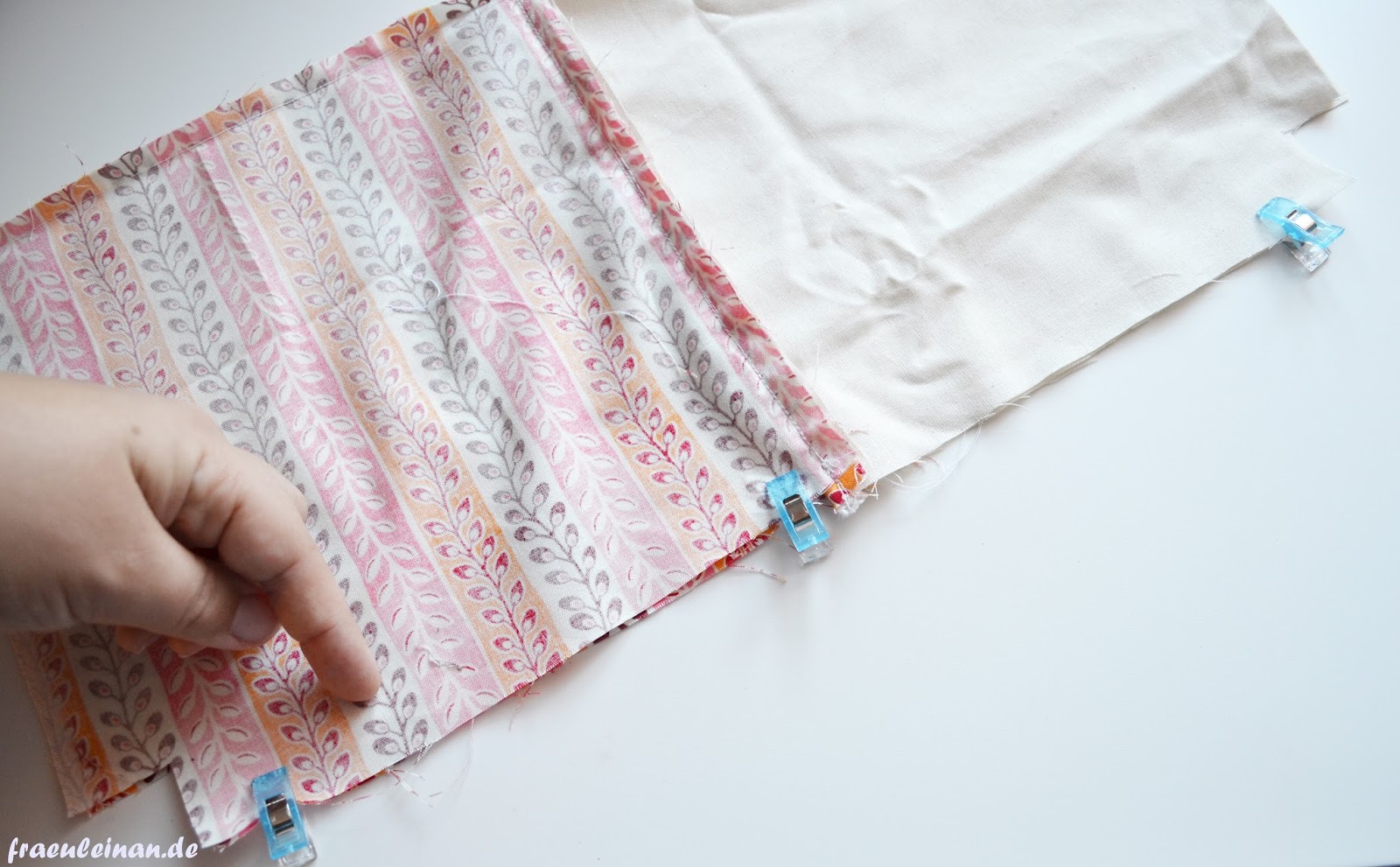 Steckt die beiden Stoffseiten mit Stecknadeln oder Wonderclips gut fest, damit beim Nähen nichts verrutscht.