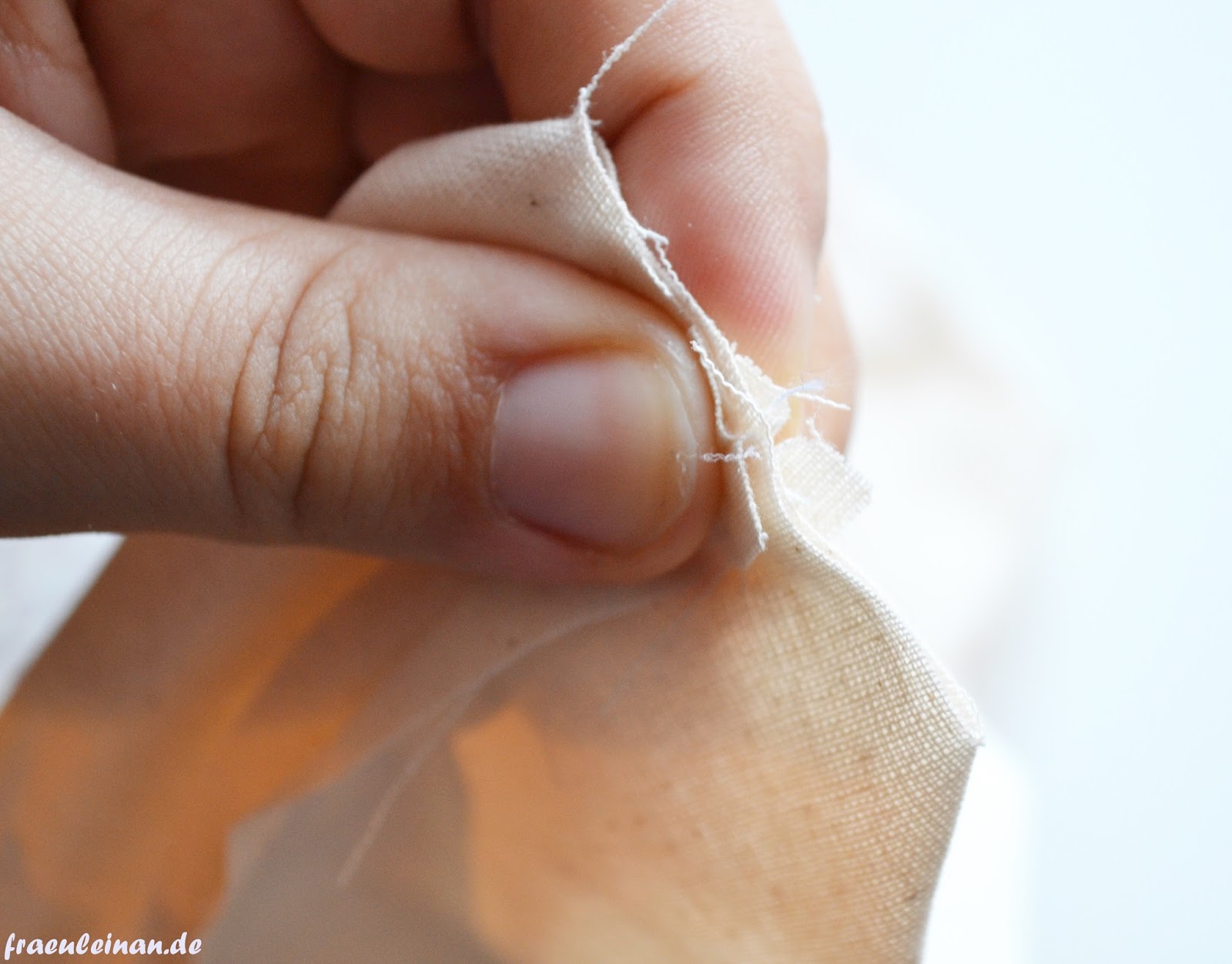 Jetzt nur noch die Ecken zusammen nähen. Hierfür die beiden Stoffseiten auseinander ziehen und die beiden Nähte (Seiten- und Bodennaht) aufeinander treffen lassen.