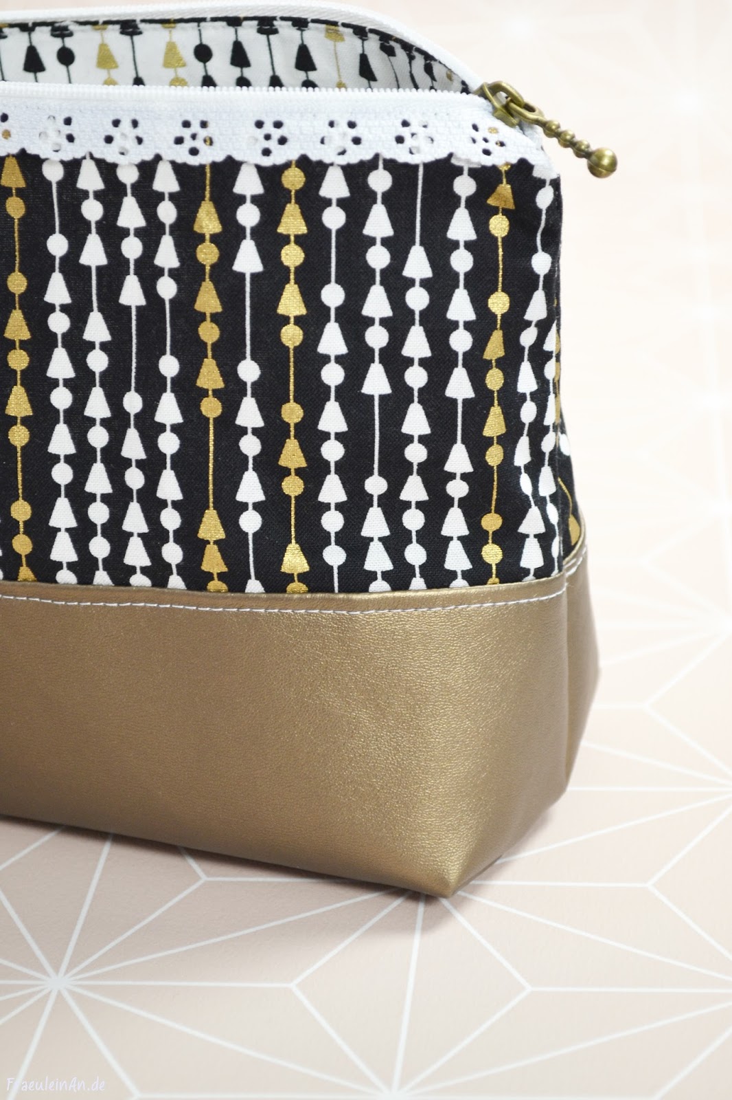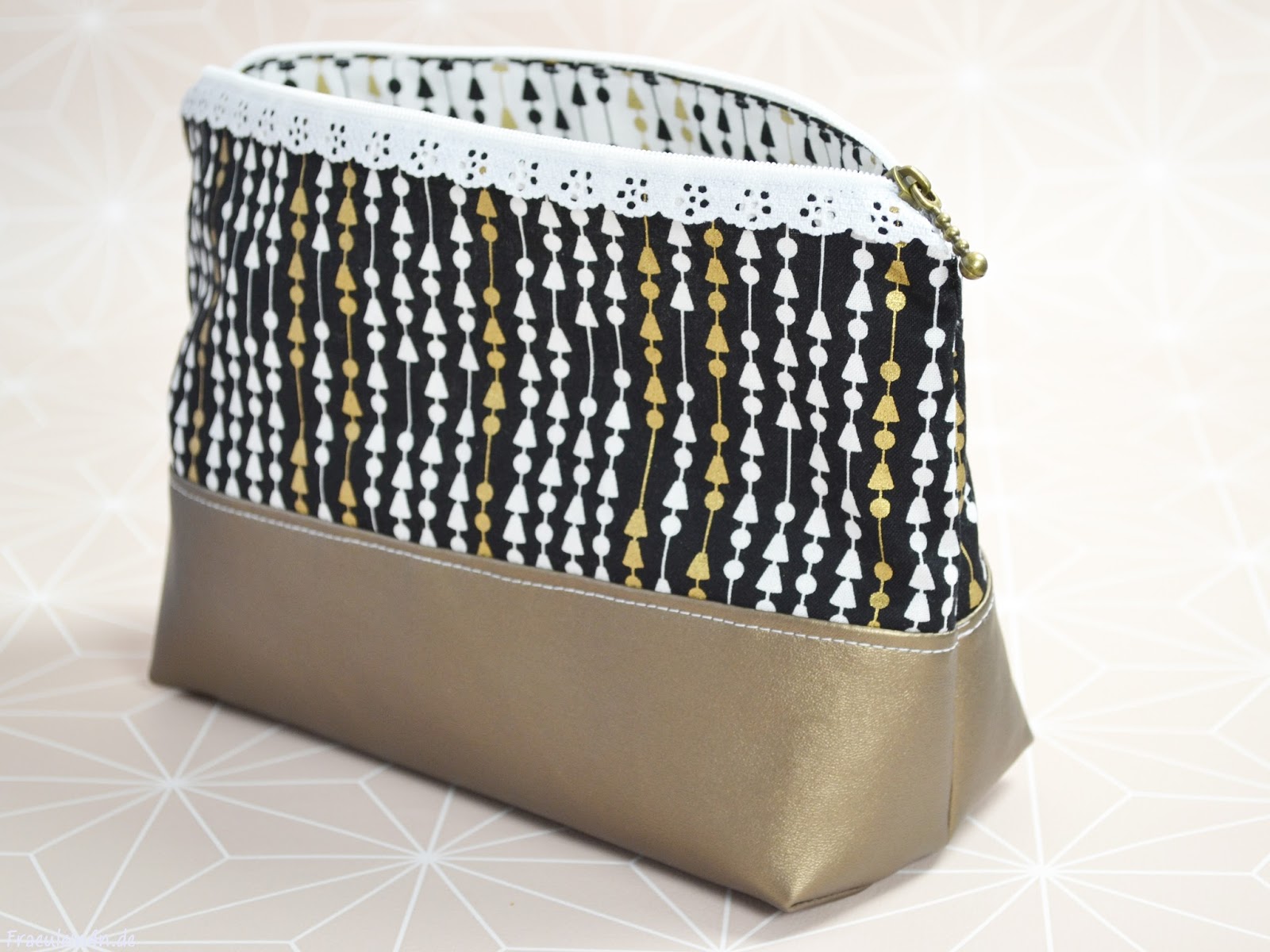 Während Maike sich dem Beutel zugewandt hat, habe ich eine Kosmetiktasche genäht. Das war nämlich der zweite Wunsch.