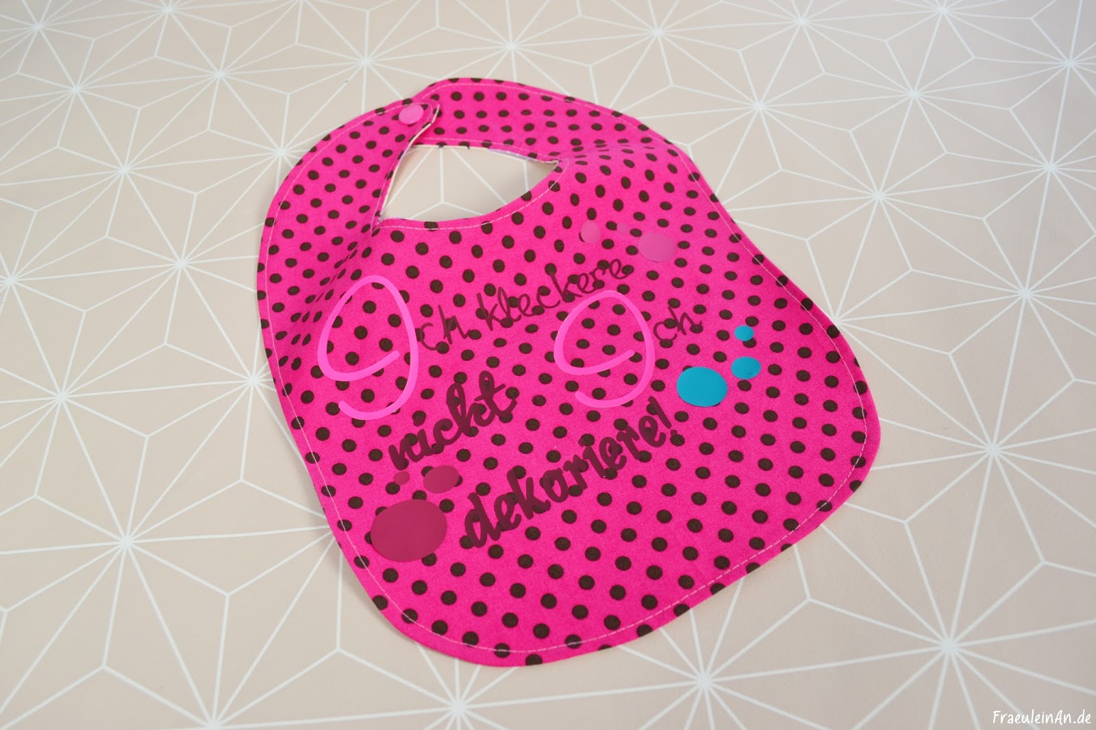 Auf jedenfall haben wir ein Lätzchen geschenkt bekommen, als kleine Aufmerksamkeit des Möbelhauses. Ich denke allerdings nicht, dass ich das Lätzchen verwenden werde, und der Spruch so ist mir auch einfach zu langweilig. Somit habe ich mir kurzerhand ein Lätzchen genäht,