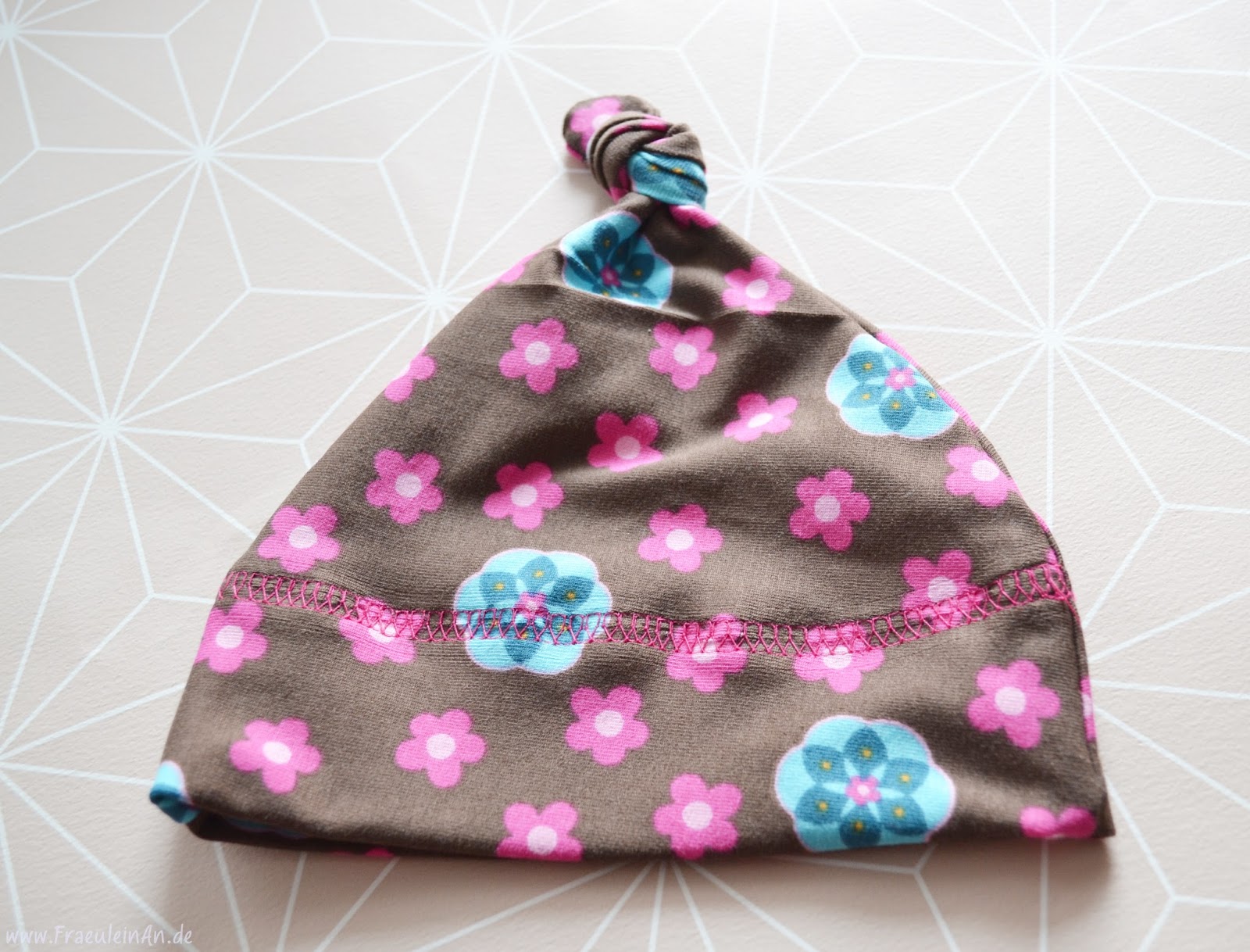 Ich hatte vor einem Jahr für unser Julibaby auch Knotenmützchen genäht… leider haben sie nicht gepasst, weil unsere Dame so einen großen Kopf hatte…
