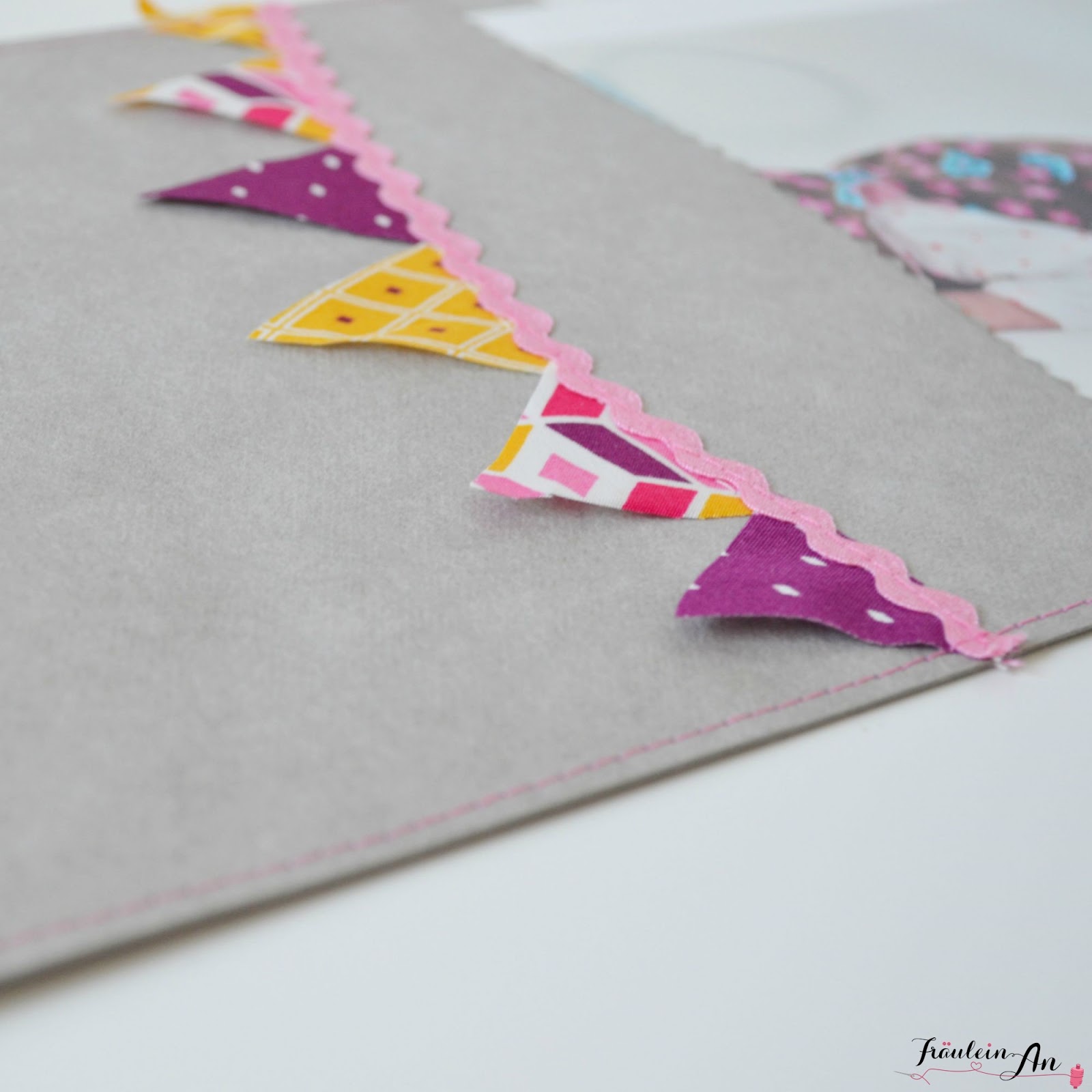 An der vordere Öffnung habe ich einfach mit meiner ZickZack Schere entlang geschnitten um einen schöneren Abschluss zu bekommen und die hintere Seite, die ich etwas länger gehalten habe, habe ich lediglich die Ecken abgerundet.