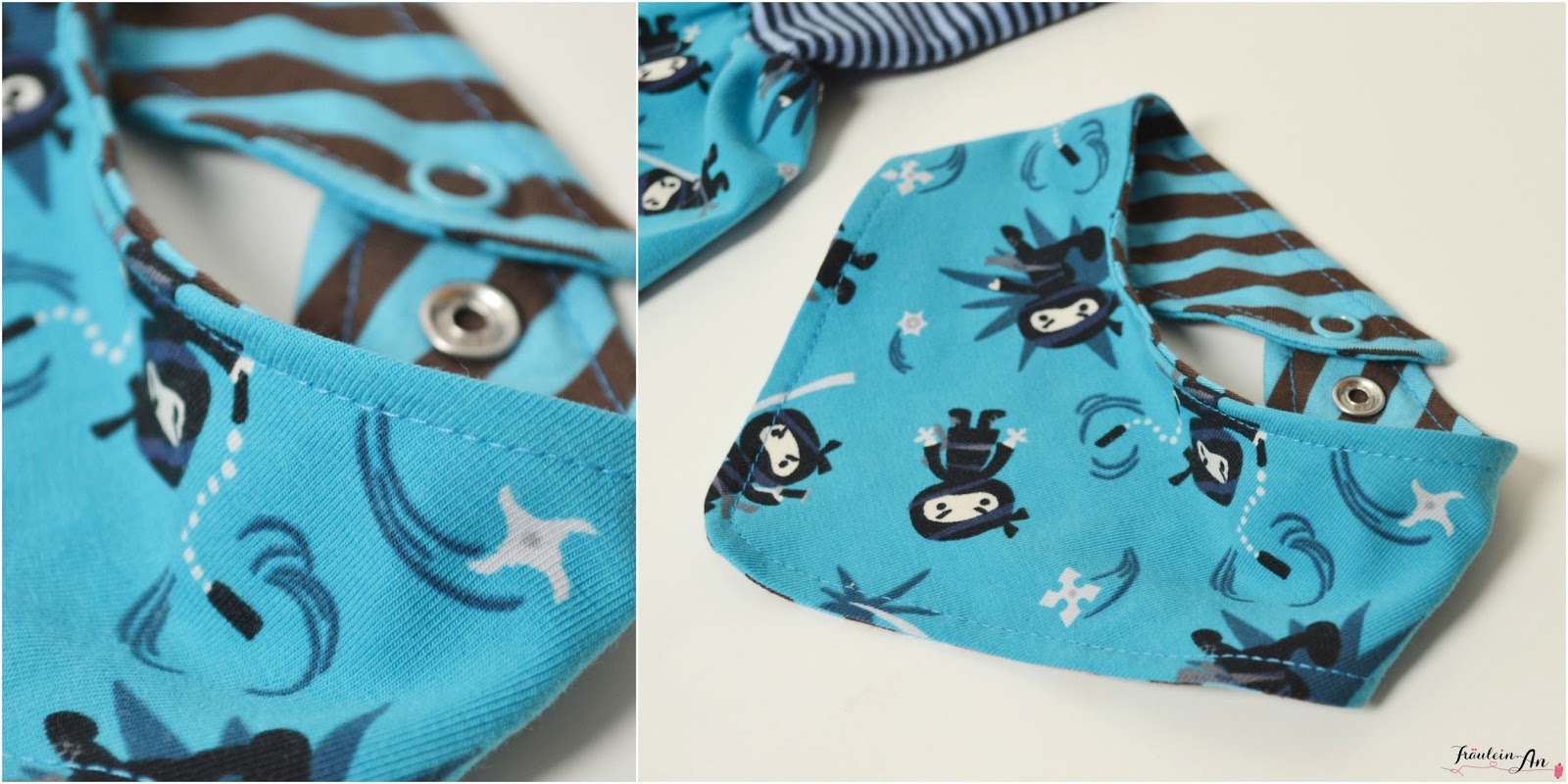 Passend dazu habe ich noch ein Sabbertuch genäht – die werden bei den Kleinen schließlich immer gebraucht. Für die Rückseite des Sabbertuchs habe ich aus meiner Jerseyrestekiste noch ein schönes Gegenstück gefunden.