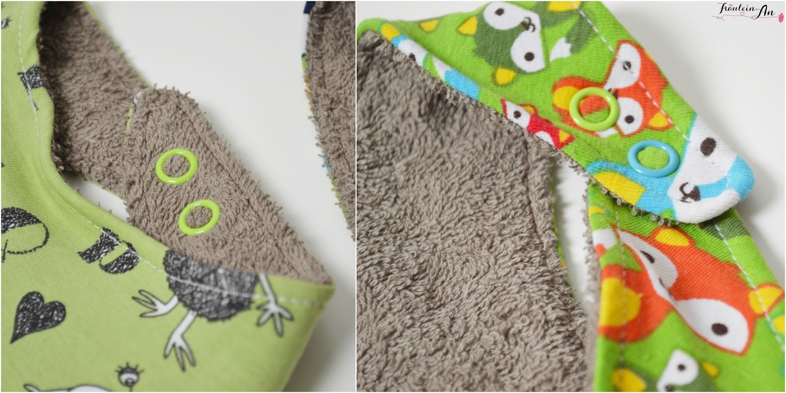 Einmal aus niedlichen Fuchsjersey* und das andere aus dem Monsterstoff* von der Checkerhose. Auf der Rückseite habe ich noch vorhanden Frottee vernäht. Die Kombination mit der Rückseite aus Frottee gefällt mir ausgesprochen gut.