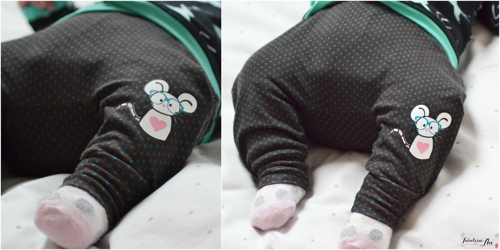 Auch wenn die Hose ins bräunliche geht, kann die kleine Zaubermaus die beiden genähten Niedlichkeiten mit ruhigen Gewissen zusammen anziehen. Okay, die Mama kann wohl mir ruhigen Gewissen beides zusammen der Mau anziehen! 😉