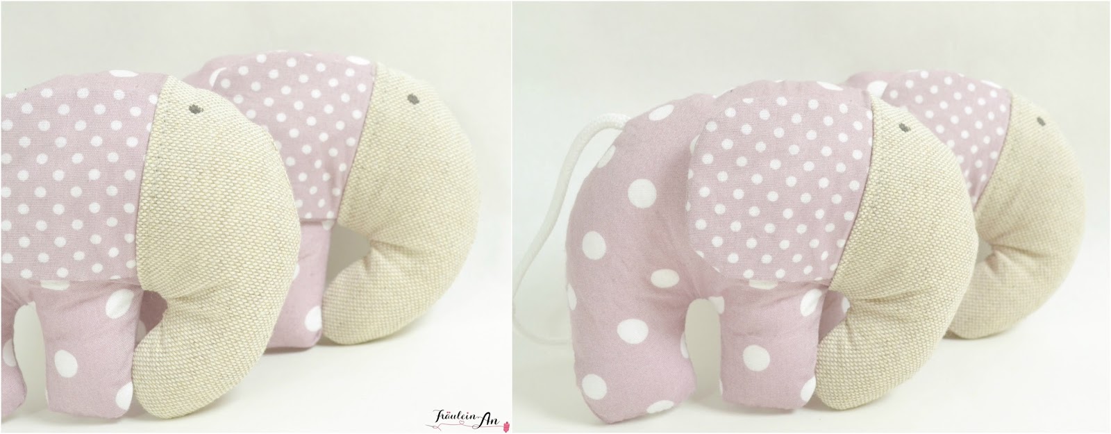 Bei Instagram habe ich nach dem Nähen schon geschrieben, dass die beiden ganz und gar nicht nach Elefanten aussehen. Eher wie ein Nasenbär. Gefüllt kann ich mich langsam mit dem Gedanken anfreunden, dass es doch tatsächlich Elefanten sind.