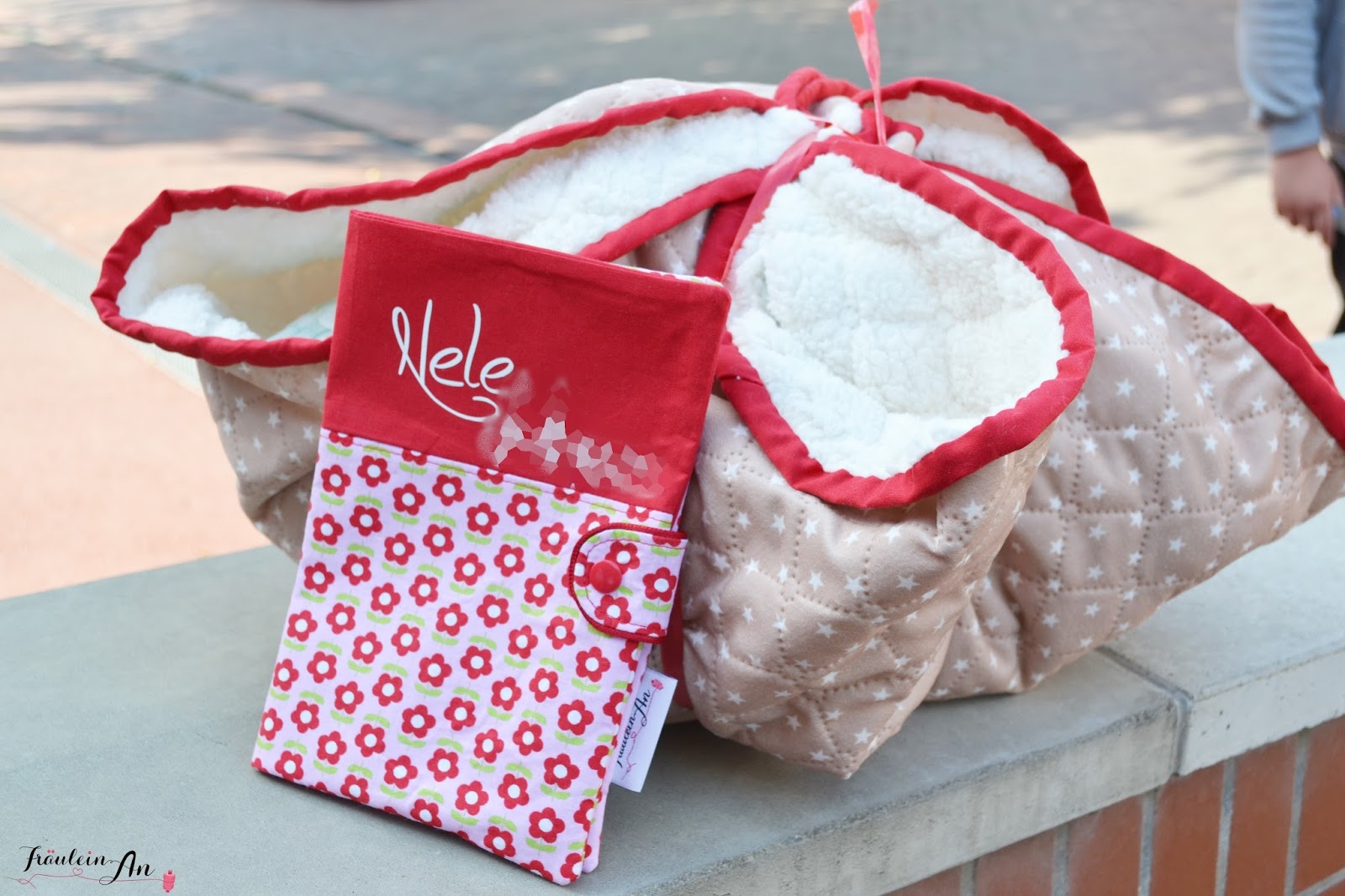Übrigens haben wir zur Decke und der U-Heft Hülle noch Pampers verschenkt. Diese habe ich zusammen gerollt und gebunden und dann in die Decke gegeben. Somit war es ein riesen Bündel voller Windeln ;-).