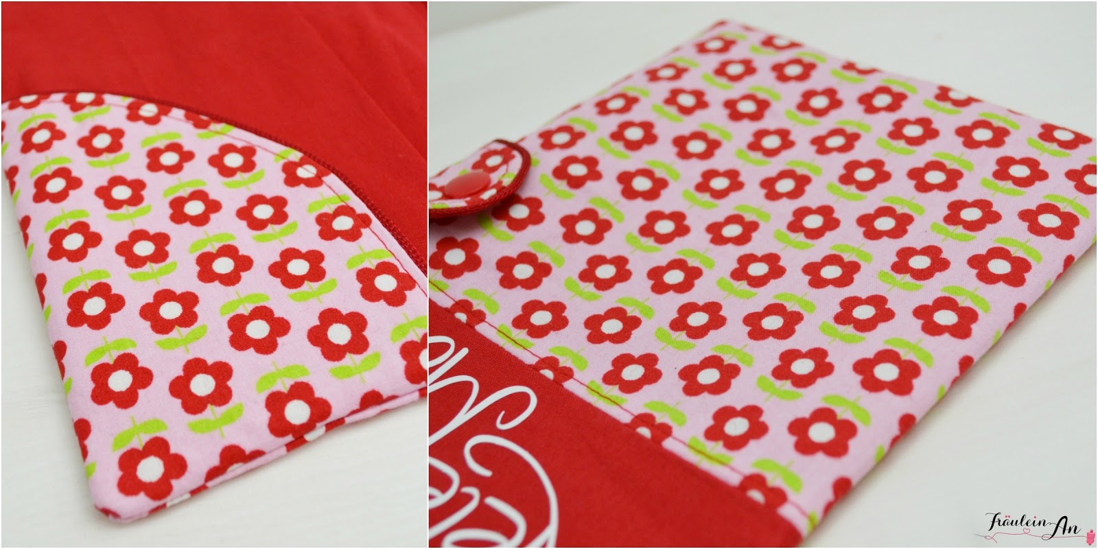 Für die Farbe des Bindings war ich mit weniger sicher. Rosa, pink oder rot. Letztendlich fiel meine Wahl auf rot, da diese Farbe sehr gut zur U-Heft Hülle passt.