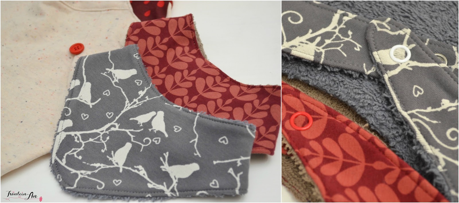 Als mich eine Kundin gefragt hatte, ob ich für ihre Tochter noch zwei neue Sabbertücher nähen könnte, habe ich liebend gerne Ja gesagt. Als die Stoffe von ihr ausgesucht waren fiel ihr Blick auf die kleine Zaubermaus in ihrer Babyhose Fritz :-).
