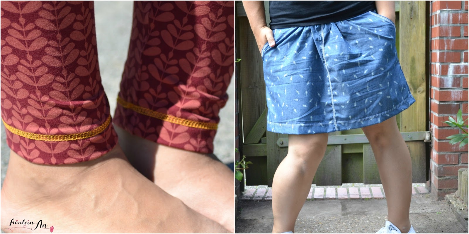 Die Overlocknähte habe ich vor dem covern platt gebügelt und los ging es. Bis auf 2 kurze Stellen habe ich keine Naht wieder auftrennen müssen – hätte ich wohl auch ohne einen Fehlstich, da ich zu schnörkelig geworden bin.