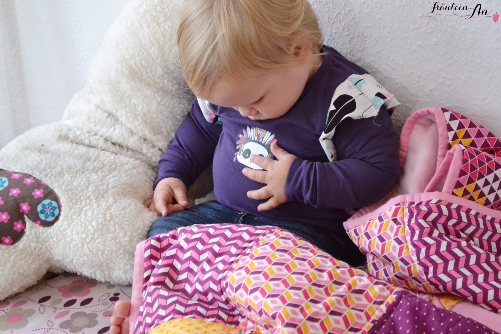 Ich habe wirklich gehofft ich komme drum herum, die riesen Fotolampen von meinem Mann aufzubauen, da sie im kleinen Kinderzimmer einfach so viel Platz in Anspruch nehmen – aber genähte Niedlichkeiten sehen am Kind einfach viel niedlicher aus, wie ich finde *g*.