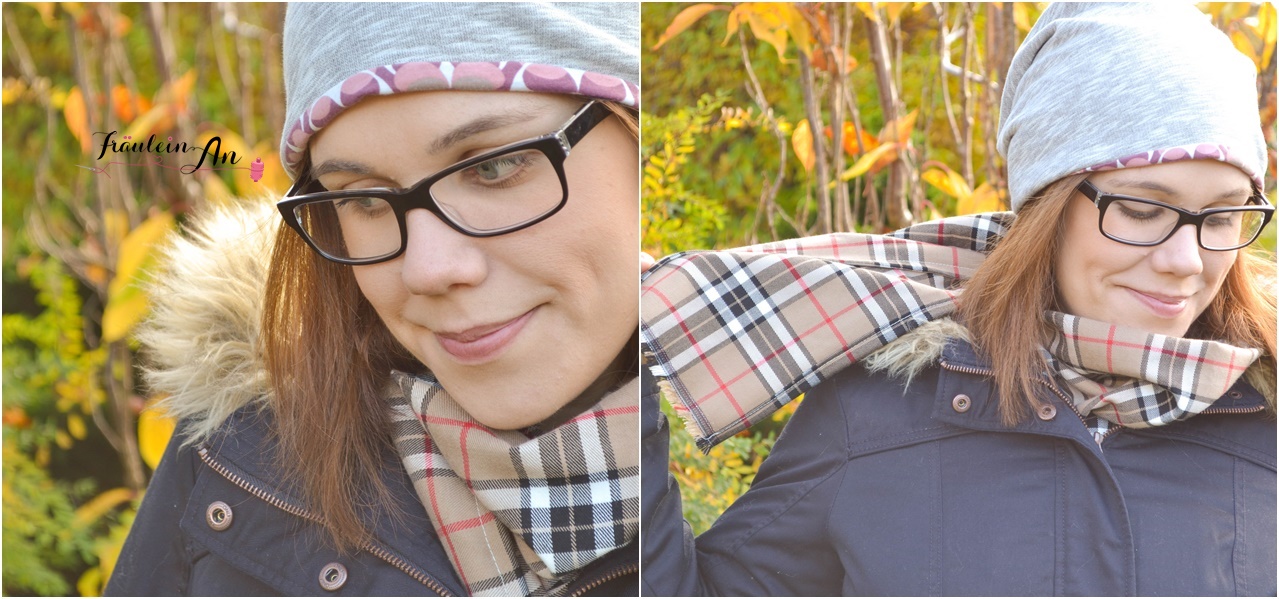 Zwei schöne wärmende Teile hast du da gemacht. Ich mag besonders, dass der Beanie so schlicht ist und dann doh etwas bunter Innenstoff mit herausschaut. Ich mag solche Details…