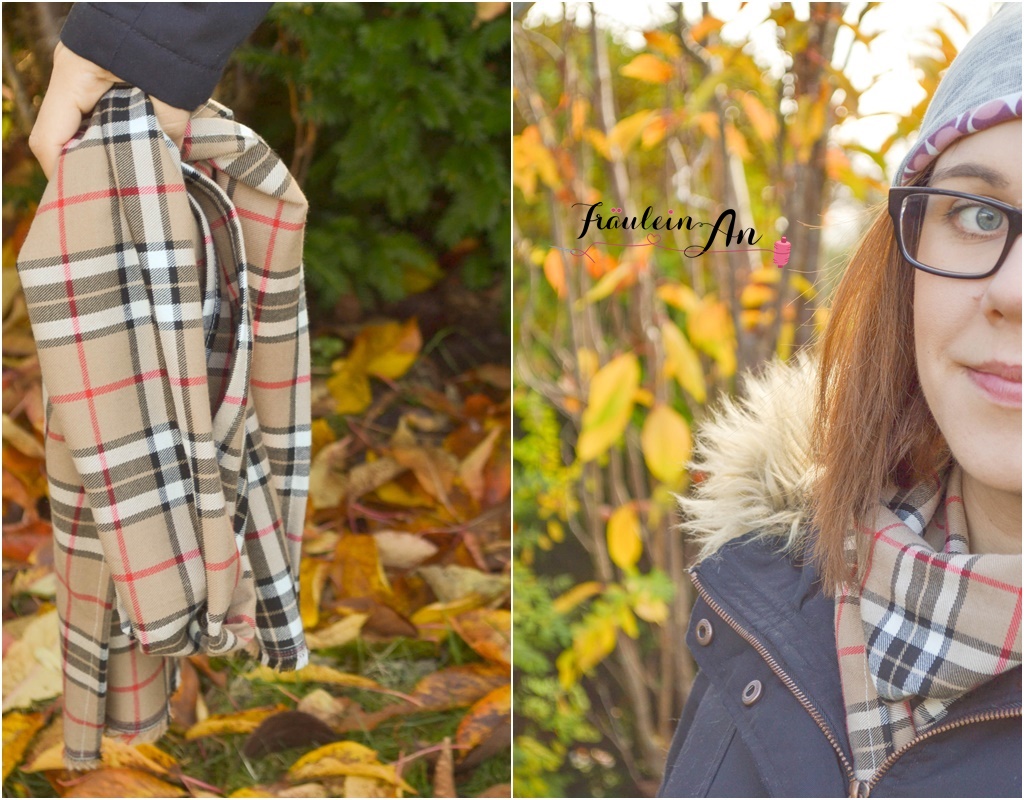 Den habe ich auch schon vor einigen Monaten genäht. War es im Frühjahr? Den Stoff habe ich schon eine Weile in meinem Regal liegen gehabt und der Plan war von Anfang an, dass daraus ein Schal entstehen soll. Ihr kennt dieses Muster bestimmt oder? Irgend eine Luxusmarke gibt es da glaube ich. Auf jedenfall habe ich mir eine schicken Halswärmer genäht. Ganz simpel einfach die langen Seiten versäubert und fertig :-).