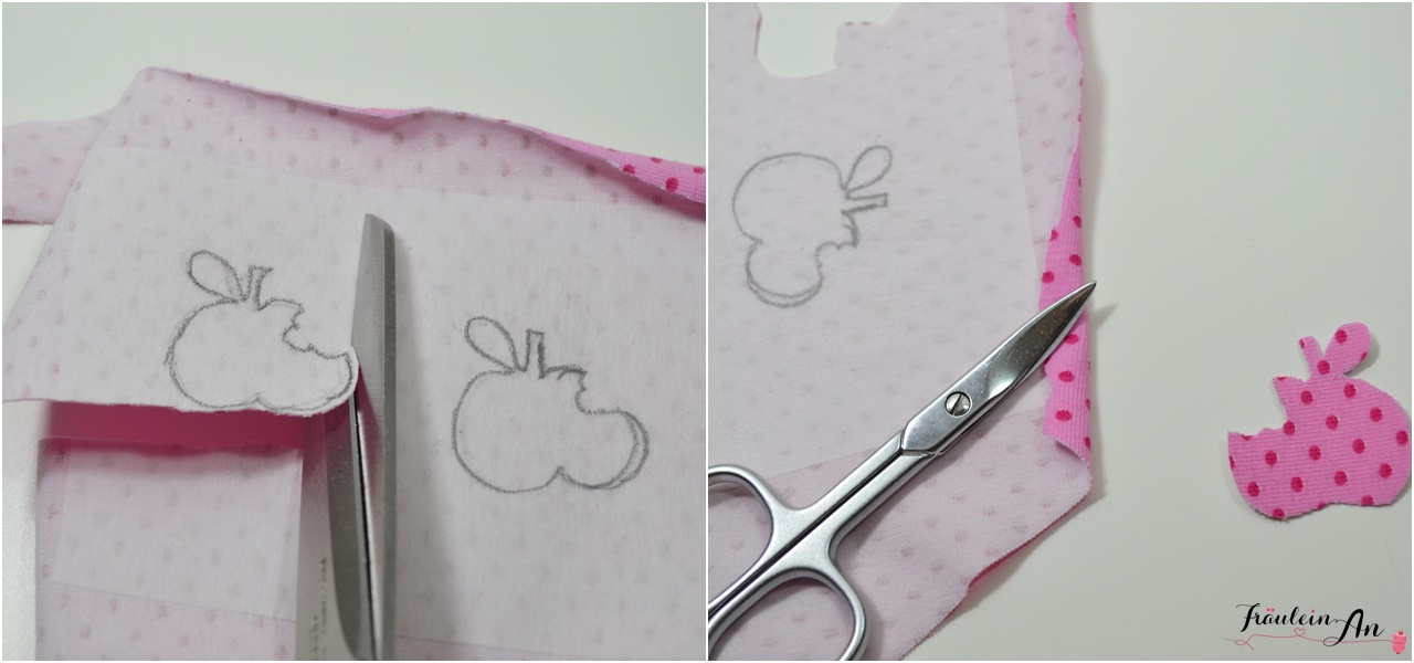 Schneidet eure Applikation aus und entfernt die zweite „Folie“ von eurem Vliesofix.
