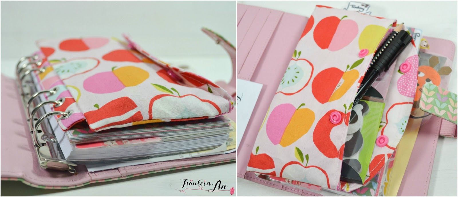 ich weiß gar nicht wo ich anfangen soll…der Stoff ist richtig hübsch und soo richtig nach Sommer! Der Schnitt ist ja wohl mega…wer brauch soo etwas tolles für die Planer, Ordner….ect. nicht, dann wäre mit dem ewigen rumgesuche auch Schluß!