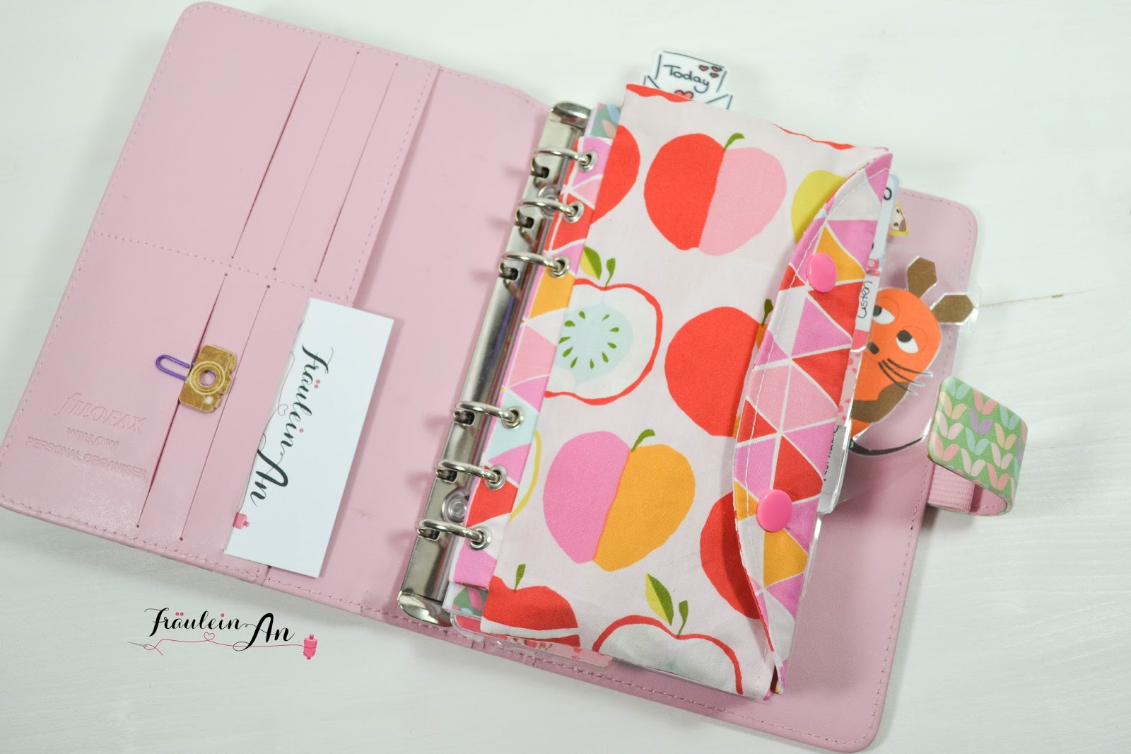 Ich finde die Größe so sogar noch besser und nützlicher als meine kleine Fili*. Jetzt finden nämlich nicht nur Stifte im Etui ihren Platz, sondern auch Post-Its, Klammern oder anderen „Kleinkram“. Für’s filofaxing perfekt – leider habe ich dafür keine Zeit mehr, muss ich dringend mal wieder machen. Filofaxing macht nämlich wirklich sehr viel Spaß und bietet sich sehr gut als Ausgleich zum Nähen an :-).
