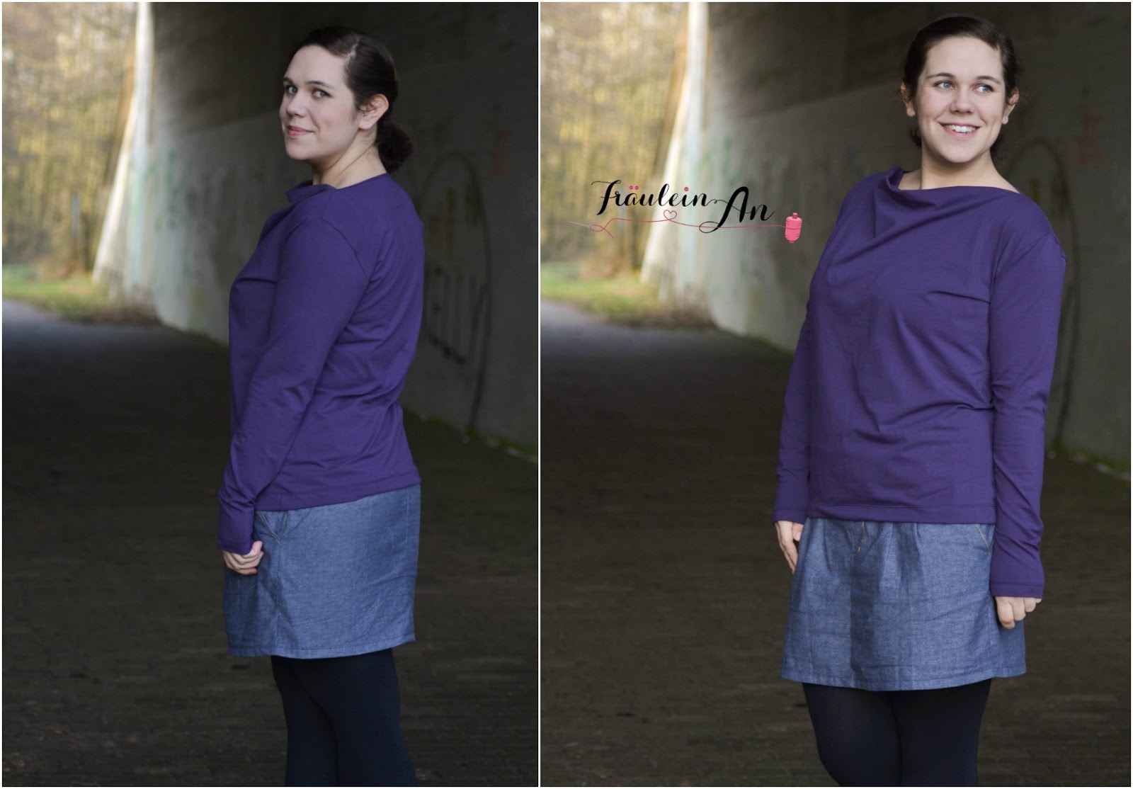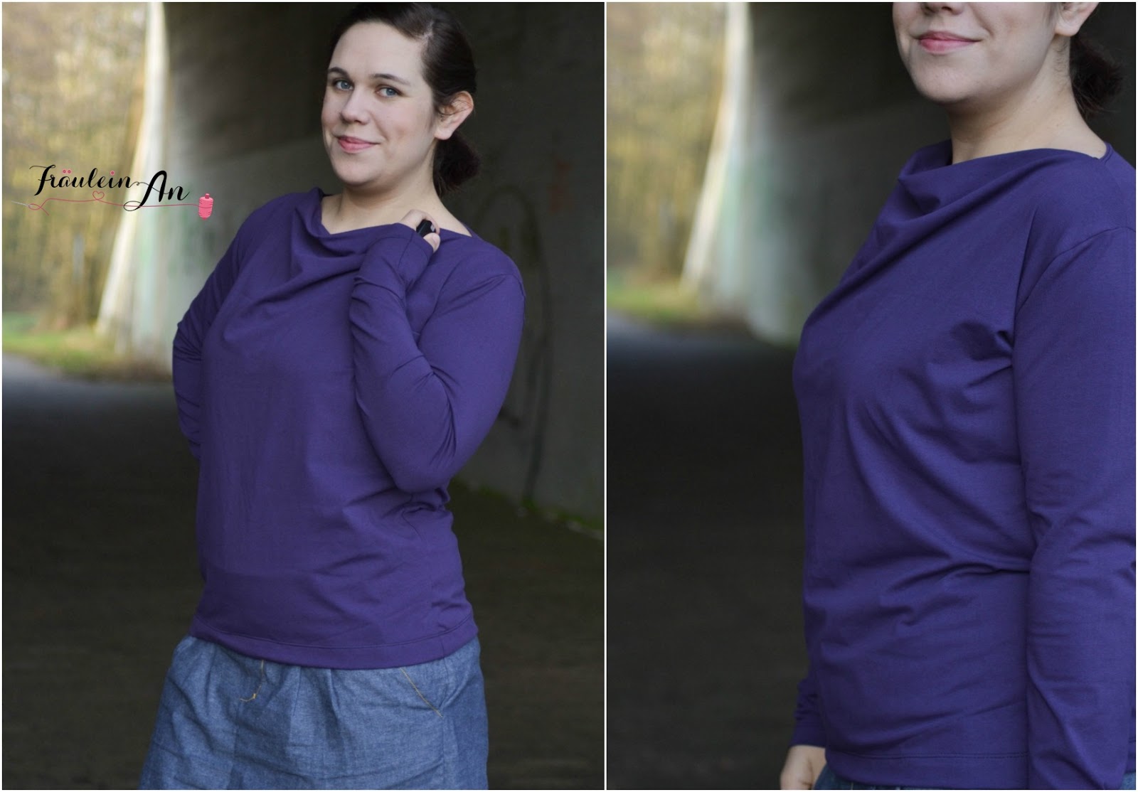 „Kat“ habe ich ganz schlicht aus einem schönen lila Ton genäht und einfach mit der Coverlock gesäumt.