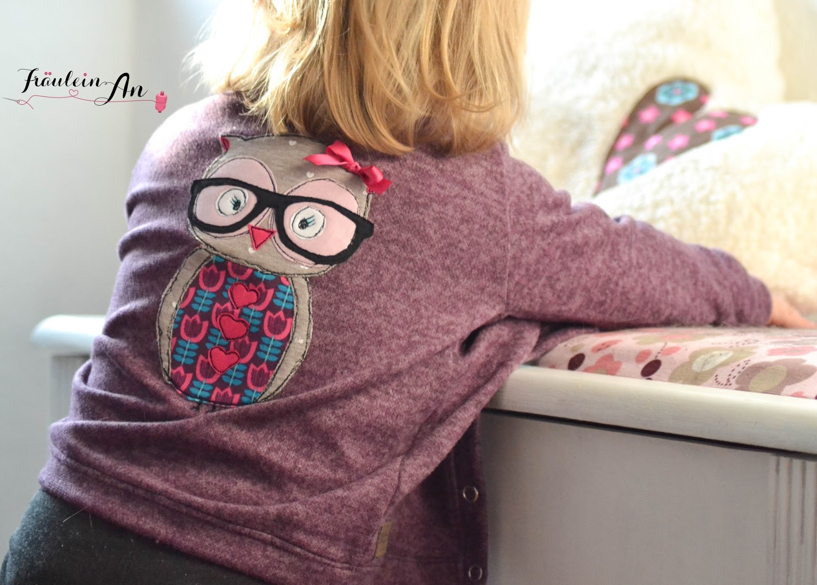 Die Eule ist ja schrecklich niedlich – und macht sich sehr gut auf diesem Cardigan.