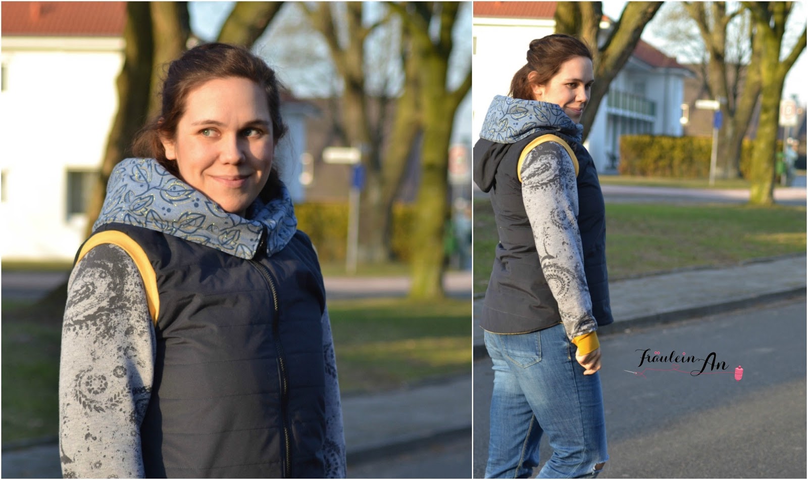 Und zum Abschluss noch einmal, ich liebe meine Liivi! Ob ich sie ein weiteres Mal nähen werde, weiß ich nicht. Die Kragen/Kapuzenversion ist mir doch ein Tick zu groß/viel. Aber das kann man sicherlich anpassen. Der Schnitt selbst macht, wie ich finde, eine recht schöne Figur und die Tasche ist der Hammer – (Achtung Eigenlob) sie ist mir einfach sehr gut gelungen ;-). Im Brustbereich würde ich wohl eine Größe größer wählen und den Innenstoff ebenso aus nicht dehnbaren Stoff machen. Ahh okay, ich glaube ich nähe mir noch eine zweite. Aber erst im Herbst.
