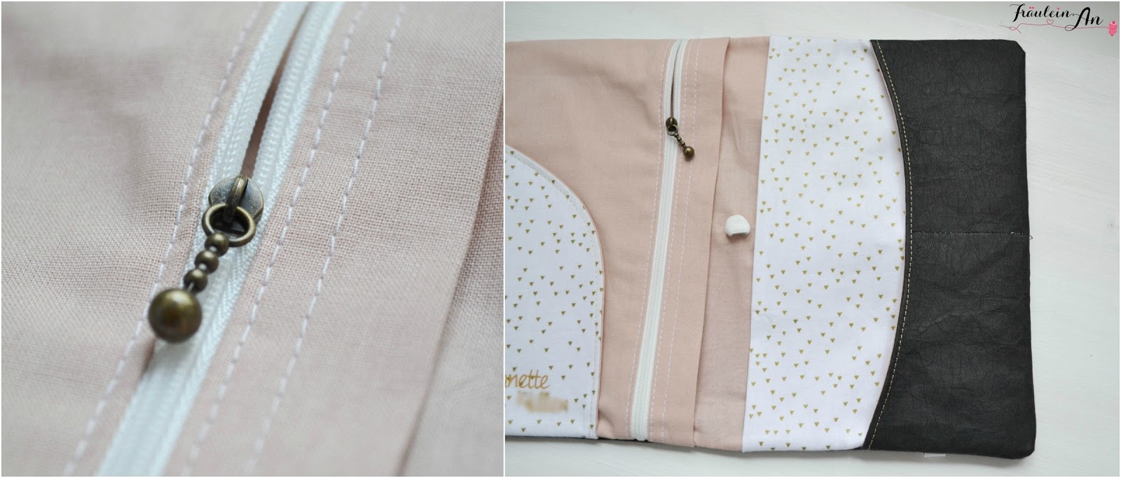 Und kleine Andenken, oder Ähnliches waren sicher verstaut im Reißverschlussfach. Für den hübschen Reißverschlusszipper habe ich mich beim Endlosspitzenreißverschluss bedient. Der Zipper passte einfach viel viel besser als der eigentliche :-).