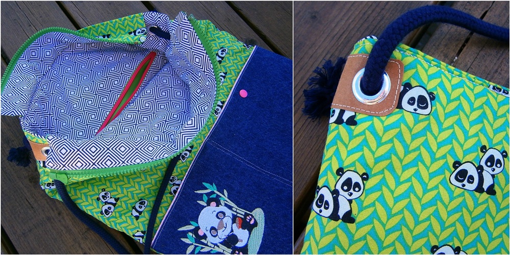 Über Ulrikes Bewerbung zum Probenähen habe ich mich wirklich sehr gefreut. Ich kenne ihren Blog schon seit vielen, vielen Jahren und ich liebe ihren Stil und vor allem ihre Quietbooks. Diese beiden Annis sind wirklich ganz toll geworden. Schnitt und Materialauswahl harmonieren hier wirklich wunderbar. Als Innenfach hat sich Ulrike bei ihrer Pandatasche für das Reißverschlussfach entschieden.