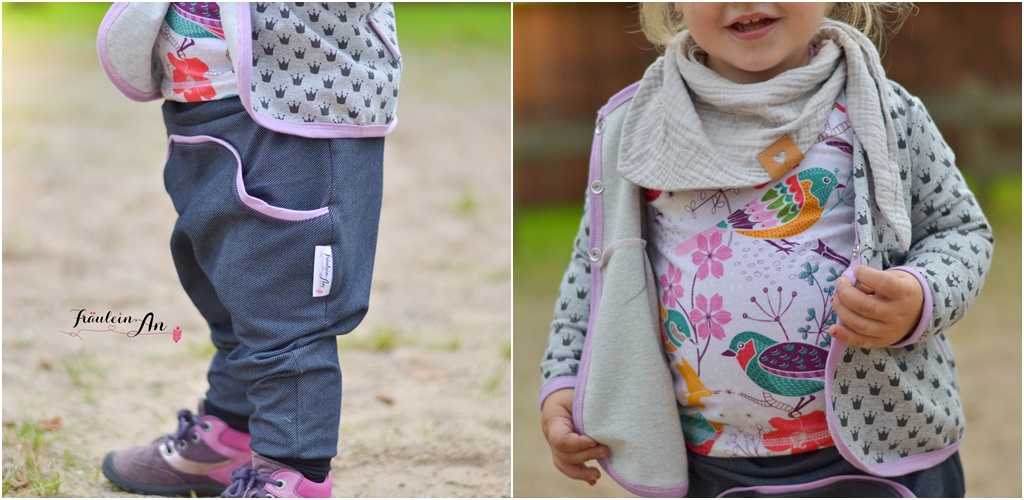 Ich mag das komplette Set sehr gerne an ihr und finde auch, dass die Stoffe gut miteinander harmonieren. Ihr könnt übrigens noch heute 30% auf die Schnitte sparen, ausgenommen ist der Hosenschnitt. Also wer sparen möchte, hat jetzt die Möglichkeit 😉