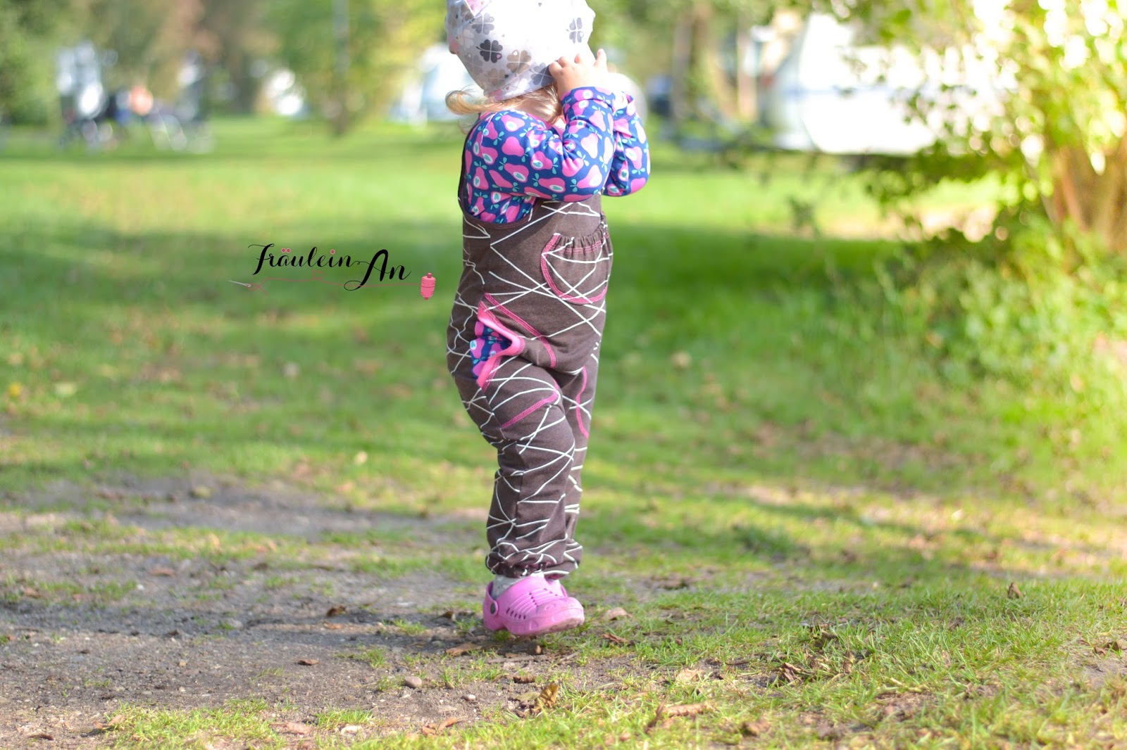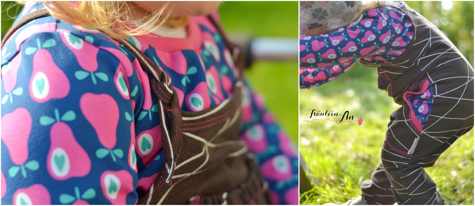 Wem der Stoff bekannt vor kommt und sich jetzt denkt „Moment, das Oberteil kennen wir doch schon, warum zeigt sie uns das noch einmal“, der irrt sich ;-). Im Frühjahr hatte ich der Hummel ein Waterfall Raglan genäht und dieses hier ist neu entstanden und ein Trägerkleid mit Ärmeln in der Tunikalänge von Klimperklein geworden. Ein wunderbarer allrounder der Schnitt. Bereits beim Apfeloutfit habe ich euch das Trägerkleid mit Teilung und Kapuze gezeigt. Ich glaube dies bleibt vorerst mein Favorit ;-).