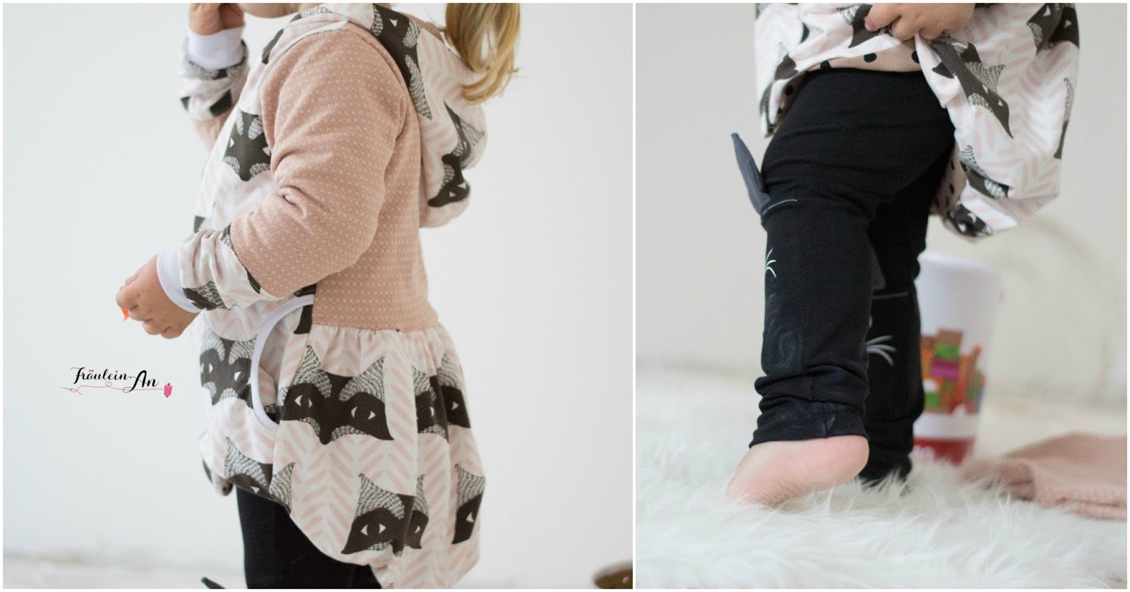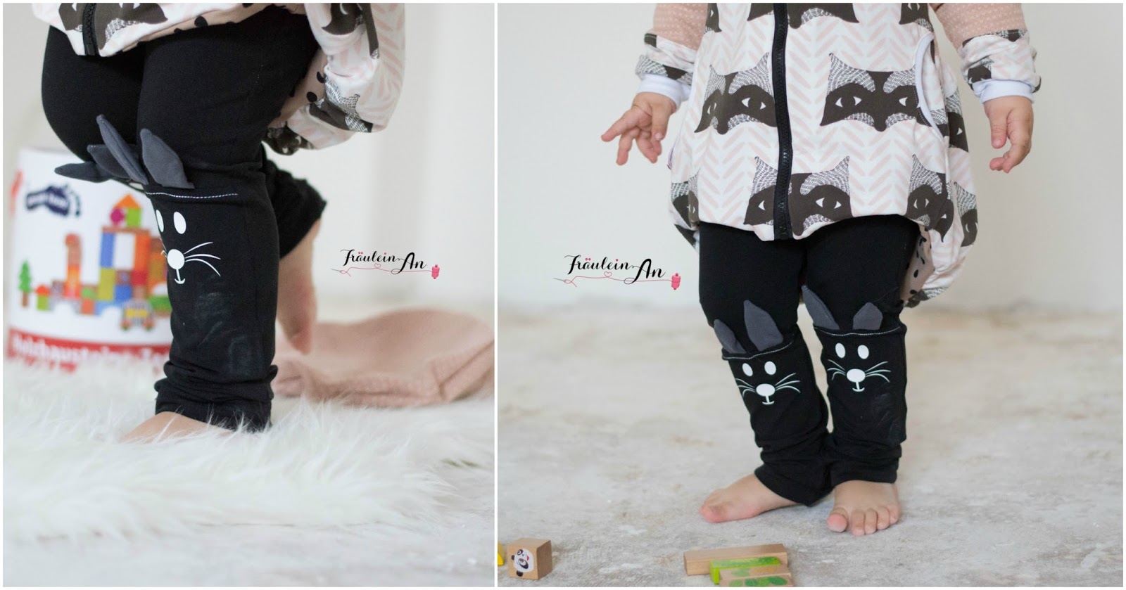 Was ich für eine Hose zur Jacke nähen wollte stand lange nicht fest. Beim stöbern durch mein Schnittmusterlager ist mir die „Wild and Free Lounge Pants“ eingefallen und kurzerhand habe ich sie genäht und noch fix die im Schnitt enthaltenen Tiere herausgesucht und Katzenohren (wie oben erzählt dachte ich, es seien Katzen) auf den Stoff übertragen, das passende Gesicht mit dem Plotter schneiden lassen und fertig ist die Katzenleggings.