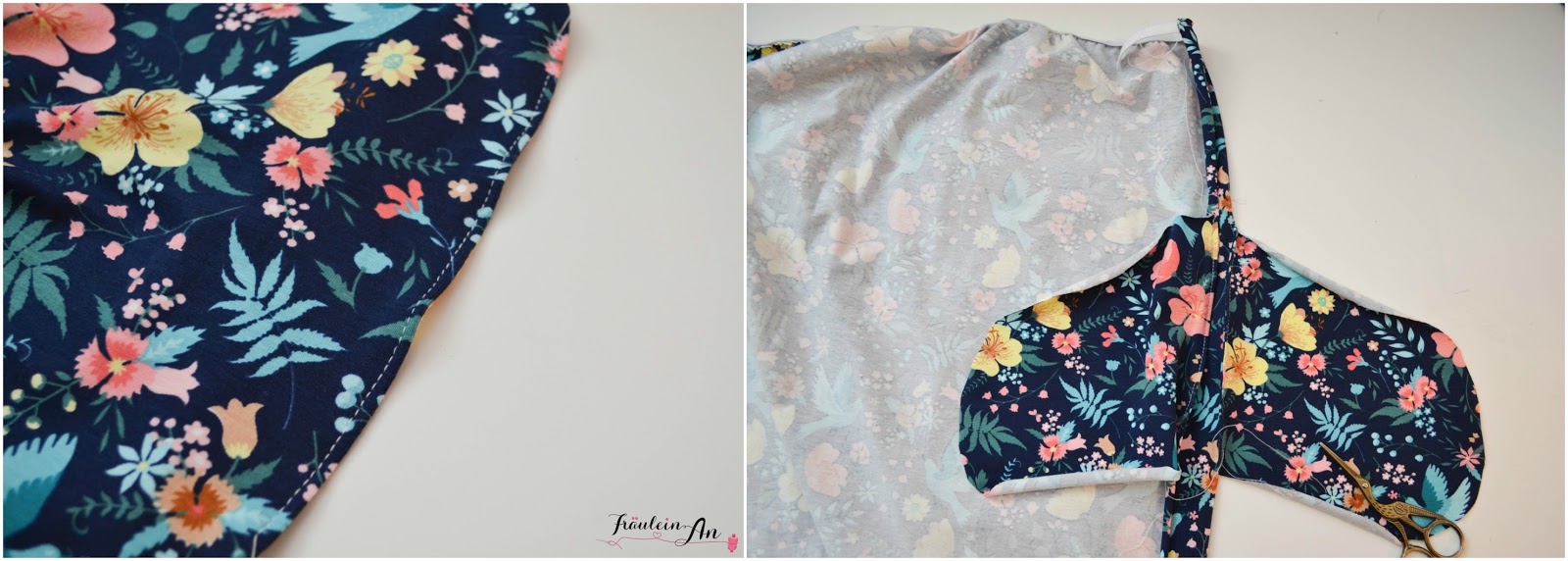 Für zwei seitliche Nahttaschen benötigt ihr insgesamt 4 Zuschnitte. 2x + 2x gegengleich.