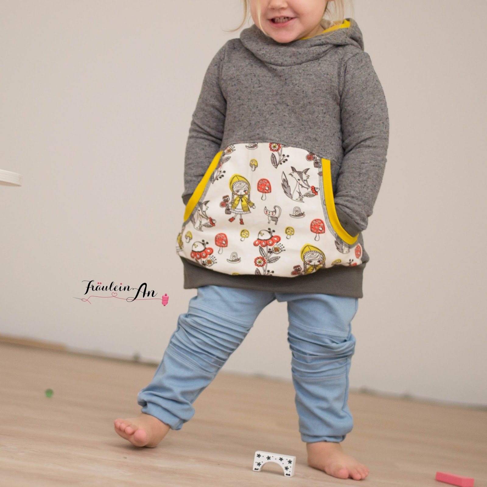 Auch wenn hier das Halsloch noch etwas eng ist, mag die Hummel ihren langen Hoodie wirklich sehr. Was die Hummel freut, freut auch die Mutti.
