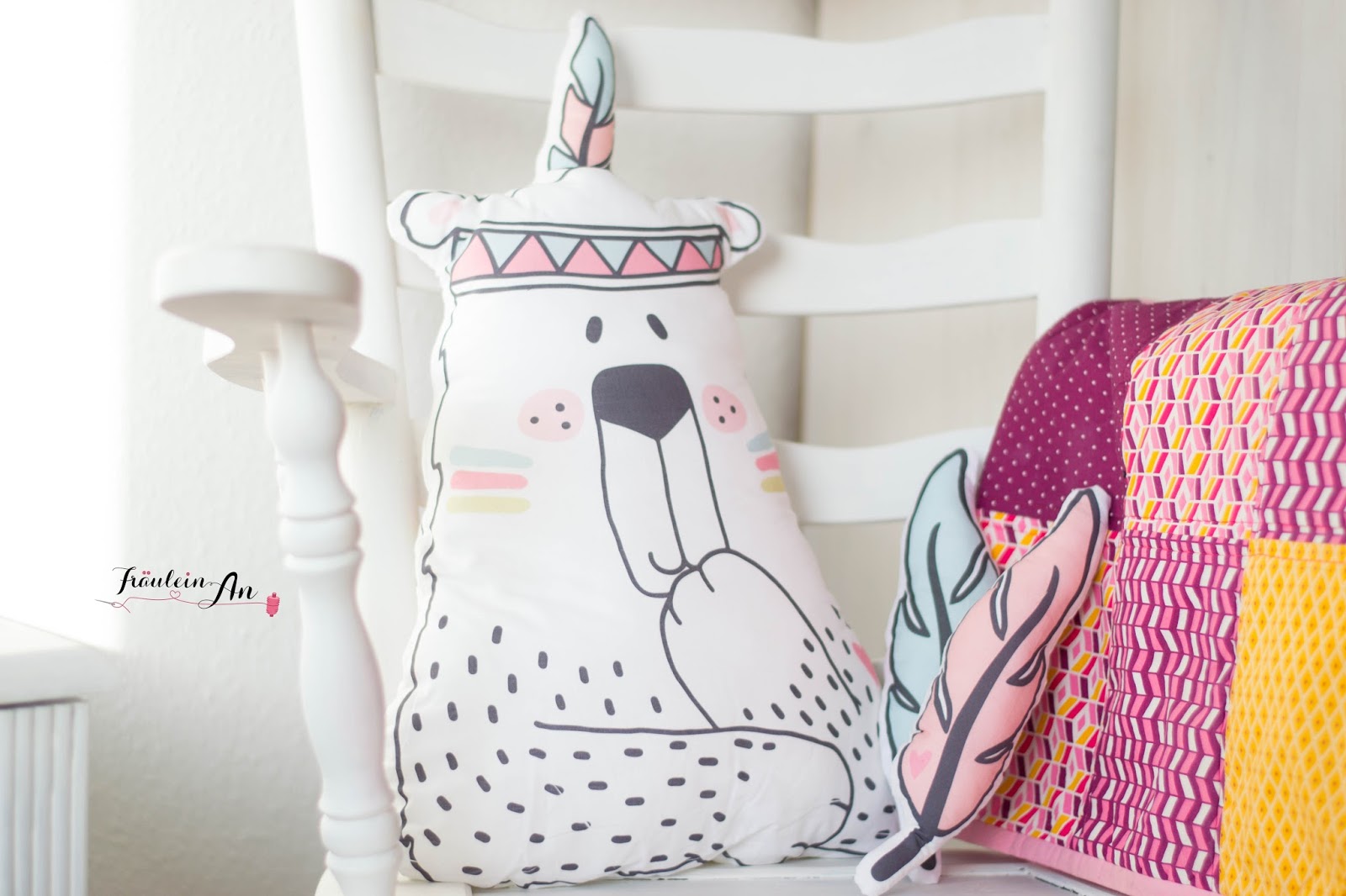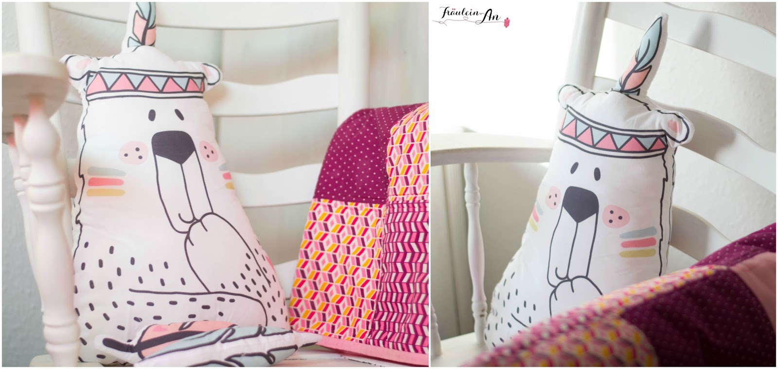 Der Bär hat übrigens das Hasenkissen aus dem Bett abgelöst. Es ist also das neue Kopfkissen bis zum nächsten Kuschelkissen befürchte ich ;-).