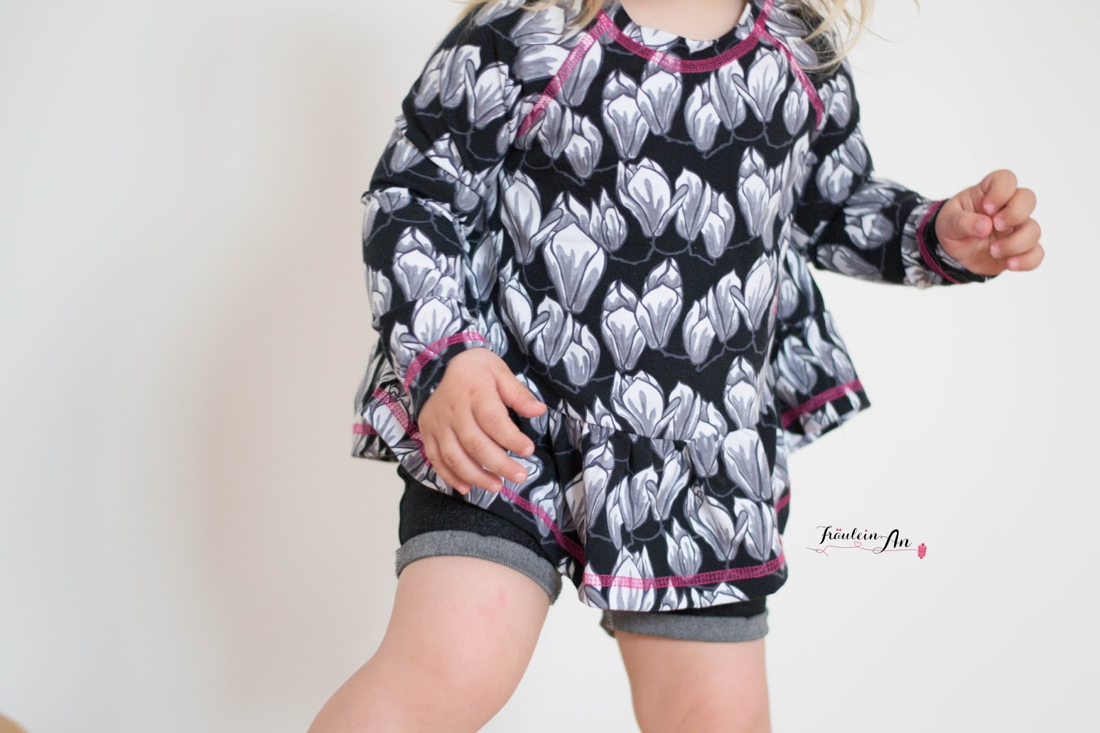 Nun noch zu diesem wunderschönen Stoff. Seit gestern sind die wunderschönen Magnolien bei Astrokatze im Shop gezogen. „Magnolia„** ist ein sehr schöner Bio-Jersey nach dem Design von „Aleksio“ der in drei neuen Farben erschienen ist. Hier habe ich schwarz/grau vernäht.