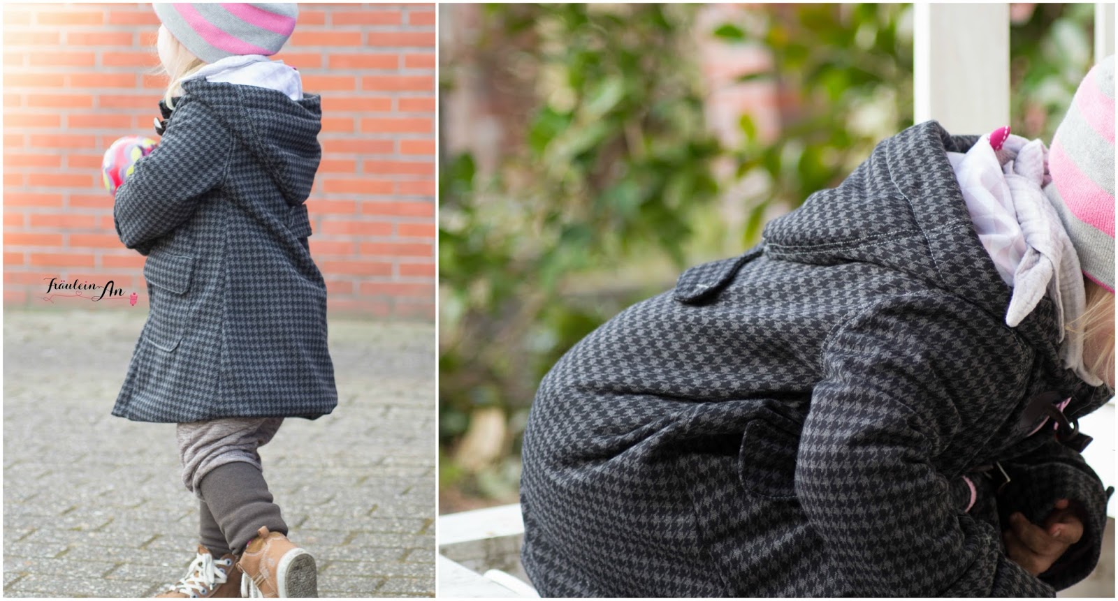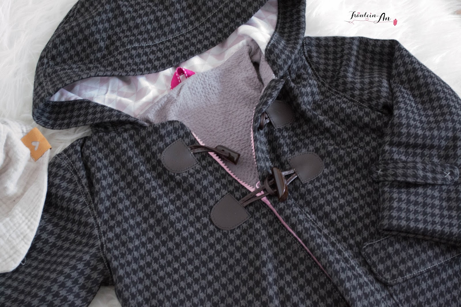 Als ich den Stoff bei Glückpunkt gesehen habe, wusste ich direkt, daraus nähe ich den geplanten Dufflecoat der Hummel.