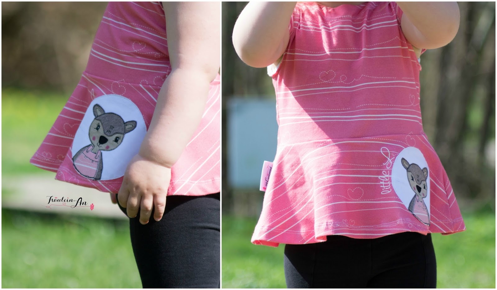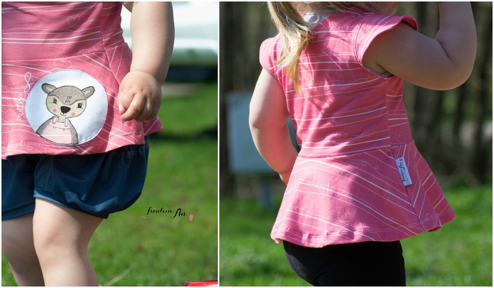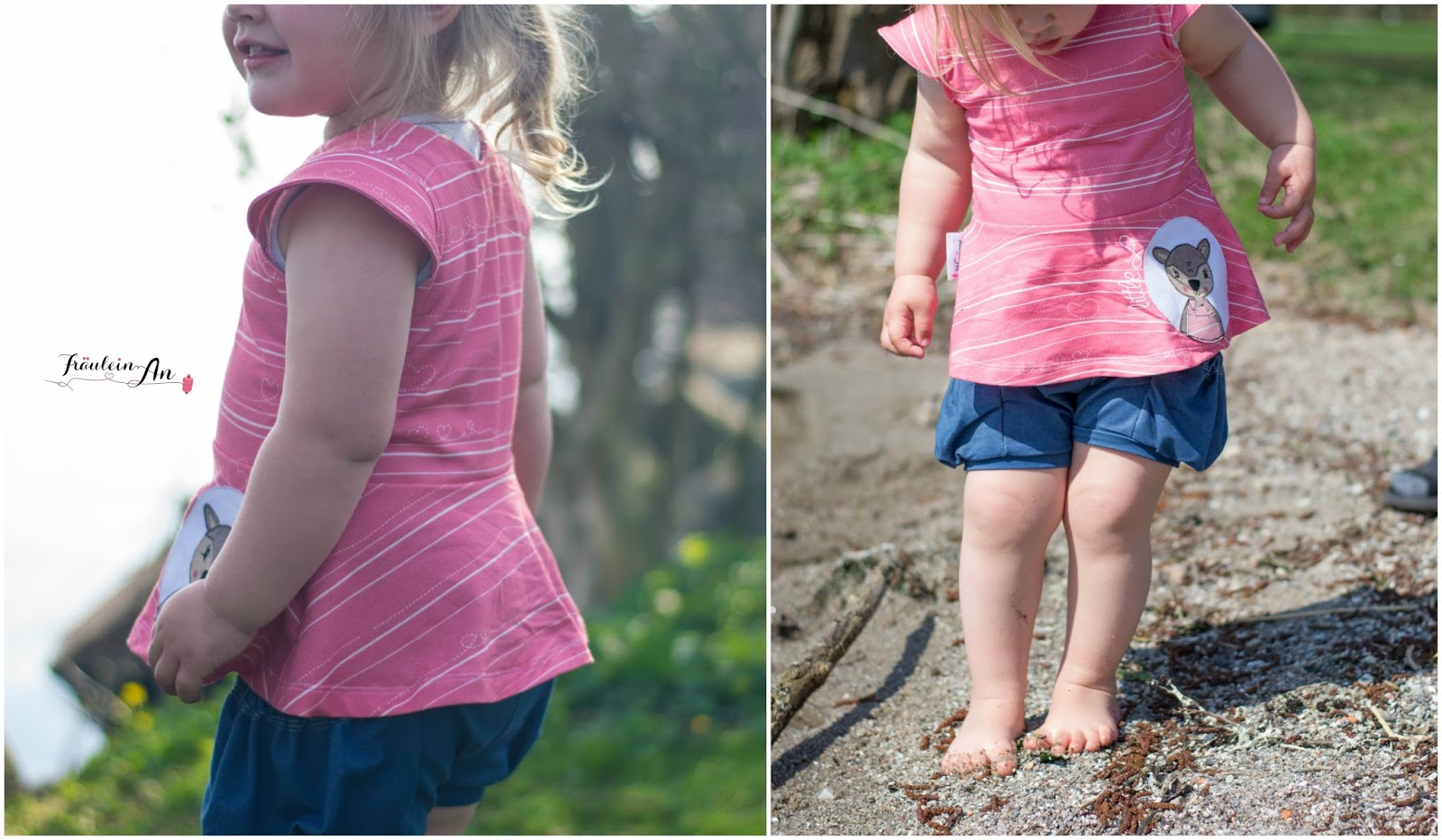 Beide Mäuse sahen so niedlich darin aus :-). Leider gibt es vom doppelten Lottchen keine gemeinsamen Fotos mit Model. Die Hummel hatte das Shirt am ersten Tag an und die kleine Maus von modage am zweiten. Doof gelaufen 😉 Aber die Hummel sucht sich ihre Kleidung jeden morgen selbst aus ;-).