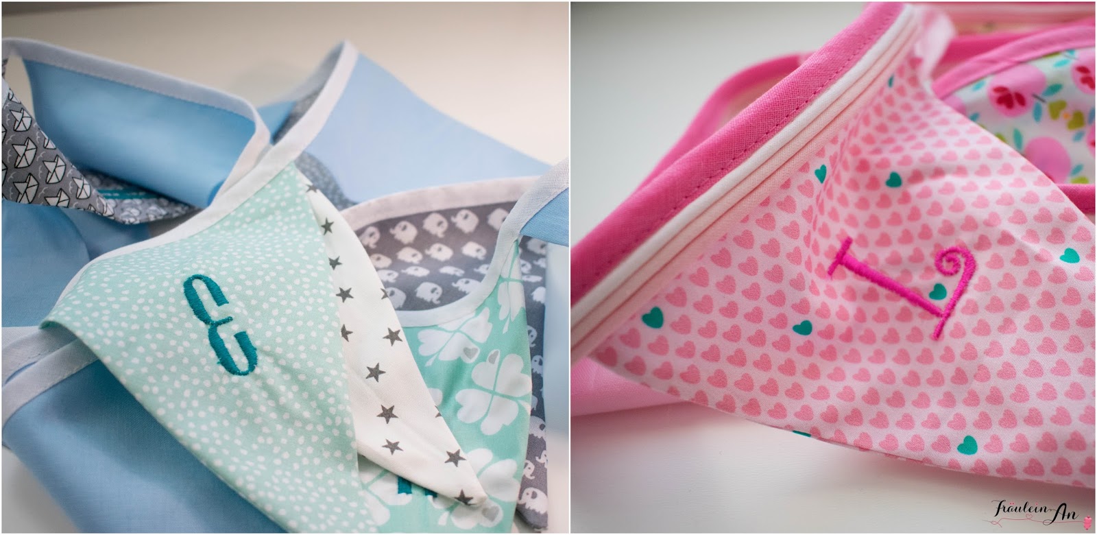 Mein erstes Projekt mit der Stickeinheit waren Buchstaben. Ich habe nämlich meiner Tochter eine Wimpelkette für das neue Zimmer genäht und somit zieren ein paar Wimpel den jeweiligen Buchstaben.