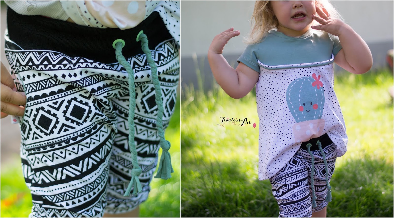 Nach meinem ersten misslungenen Versuch, aus der Baggy Pants von Kid5 eine 3/4 Hose zu machen, habe ich mich erneut getraut den Schnitt zu kürzen und dieses Mal passt es perfekt. Ansatt um ca 11 cm vom Beinende gemessen habe ich dieses mal ca. 16 cm gekürzt. Perfekt sag ich euch.