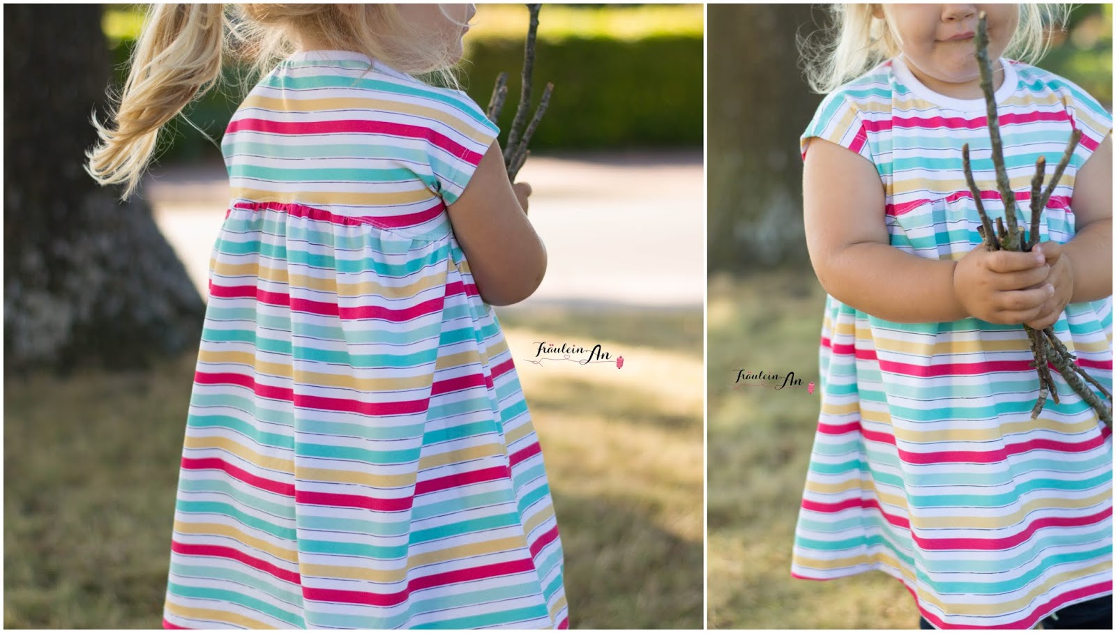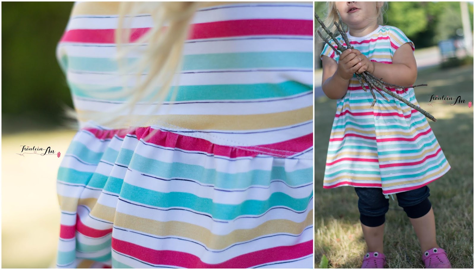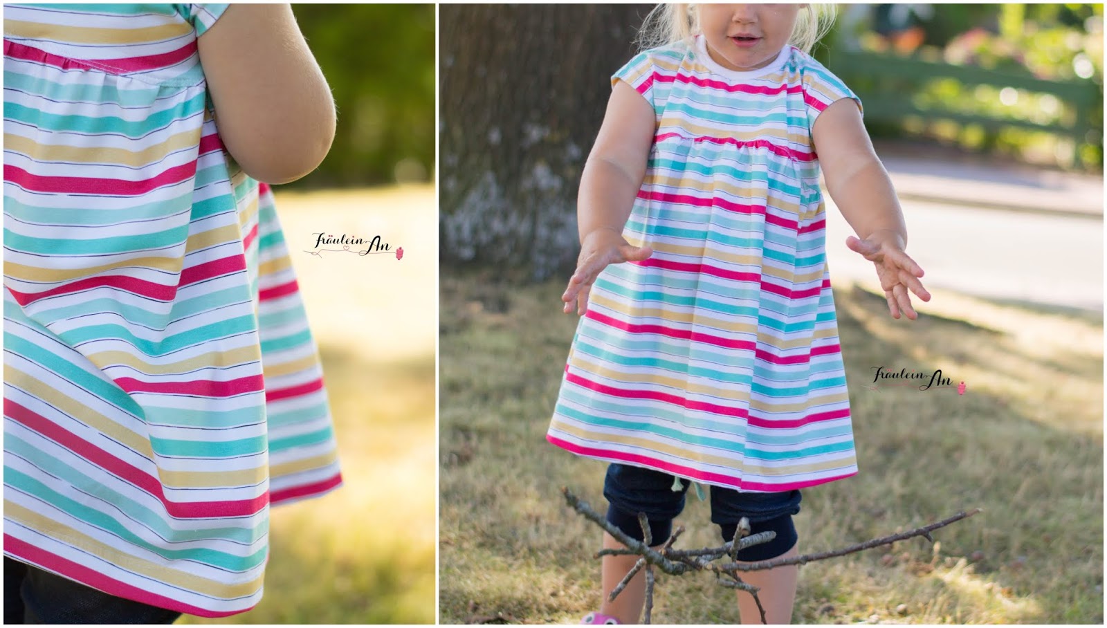 Dabei fand sie das Mädchen mit dem Eis so toll – das muss ich euch morgen unbedingt zeigen. Eigentlich war meine Idee schön mit ihr in die Stadt, ein Eis essen gehen – so ein letztes Mal bevor der Julijunge bei uns ist – und eben passend zum Stoff – leider wollte sie kein Eis als Bestechung – und ich dachte schon, sie wird krank 😉 aber nein sie wollte einfach nur das Kleid an lassen.