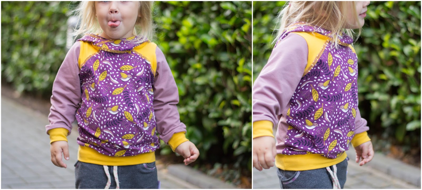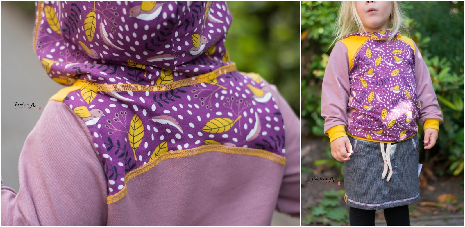 Wenn man sich die Stoffe genau anguckt erkennt man aber, dass der altrosa und der gelbe Ton einfach sehr gut zum bunten Vogeljersey passen – meiner Meinung nach natürlich ;-).